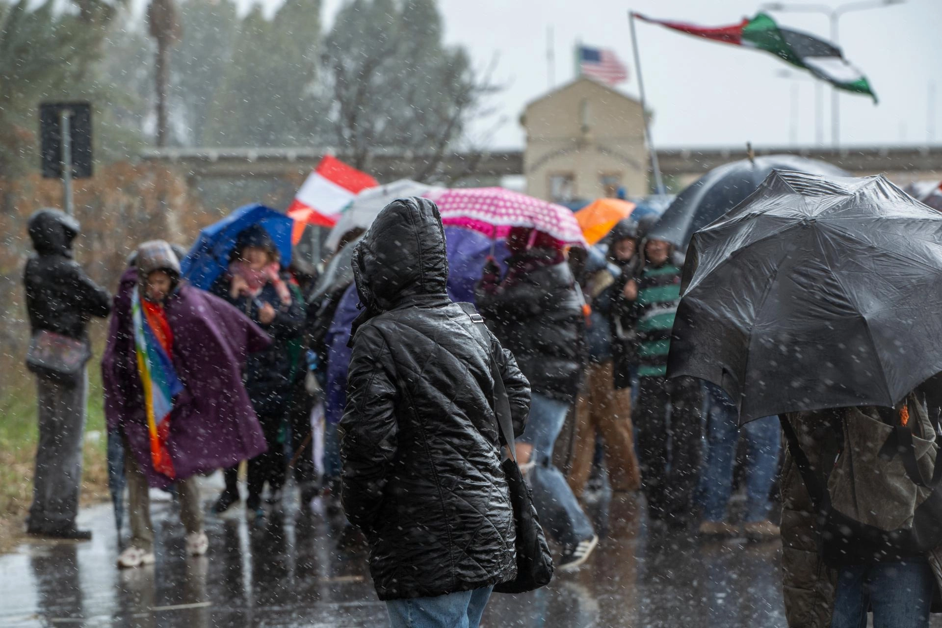 Sicilya Adası'nda ABD üssü olmasına karşı çıkan, aralarında sol partiler, sivil toplum kuruluşları ve Filistin destekçilerinin bulunduğu birkaç yüz kişiden oluşan grup, Sigonella Üssü’nün girişinde yağışlı havaya rağmen gösteri düzenledi.