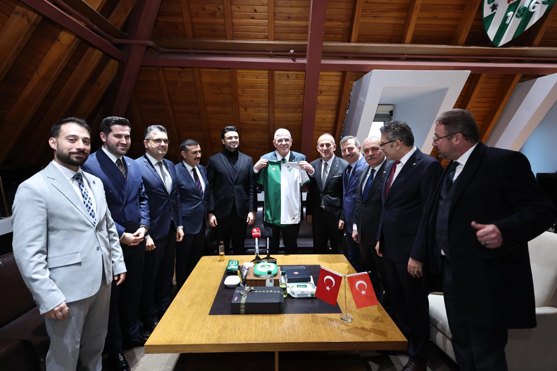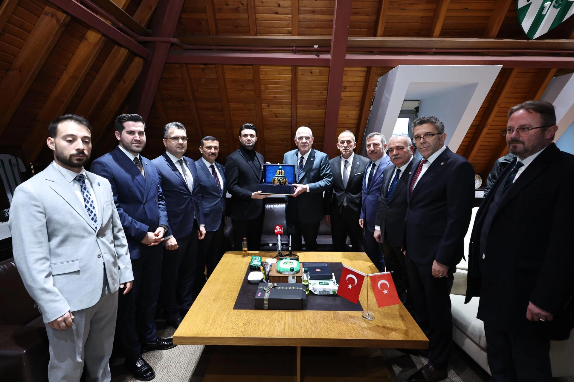 "Türkiye'yi de önemli turnuvalarda başarıyla temsil etmiş yüz akımız bir spor kulübü. Bursaspor, geride bıraktığımız dönem içerisinde birtakım talihsizlikler yüzünden şimdi 2. Lig'de ama inanıyorum ki bu yıl ligi başarıyla göğüsleyecek ve 1. Lig'e yükselecek. Önümüzdeki yıl içerisinde de Bursaspor'u Süper Lig'de göreceğiz ve hak ettiği yerde izlemeye devam edeceğiz. Ben öncelikle misafirperverliğiniz ve kadirşinaslığınız için teşekkür ederim."