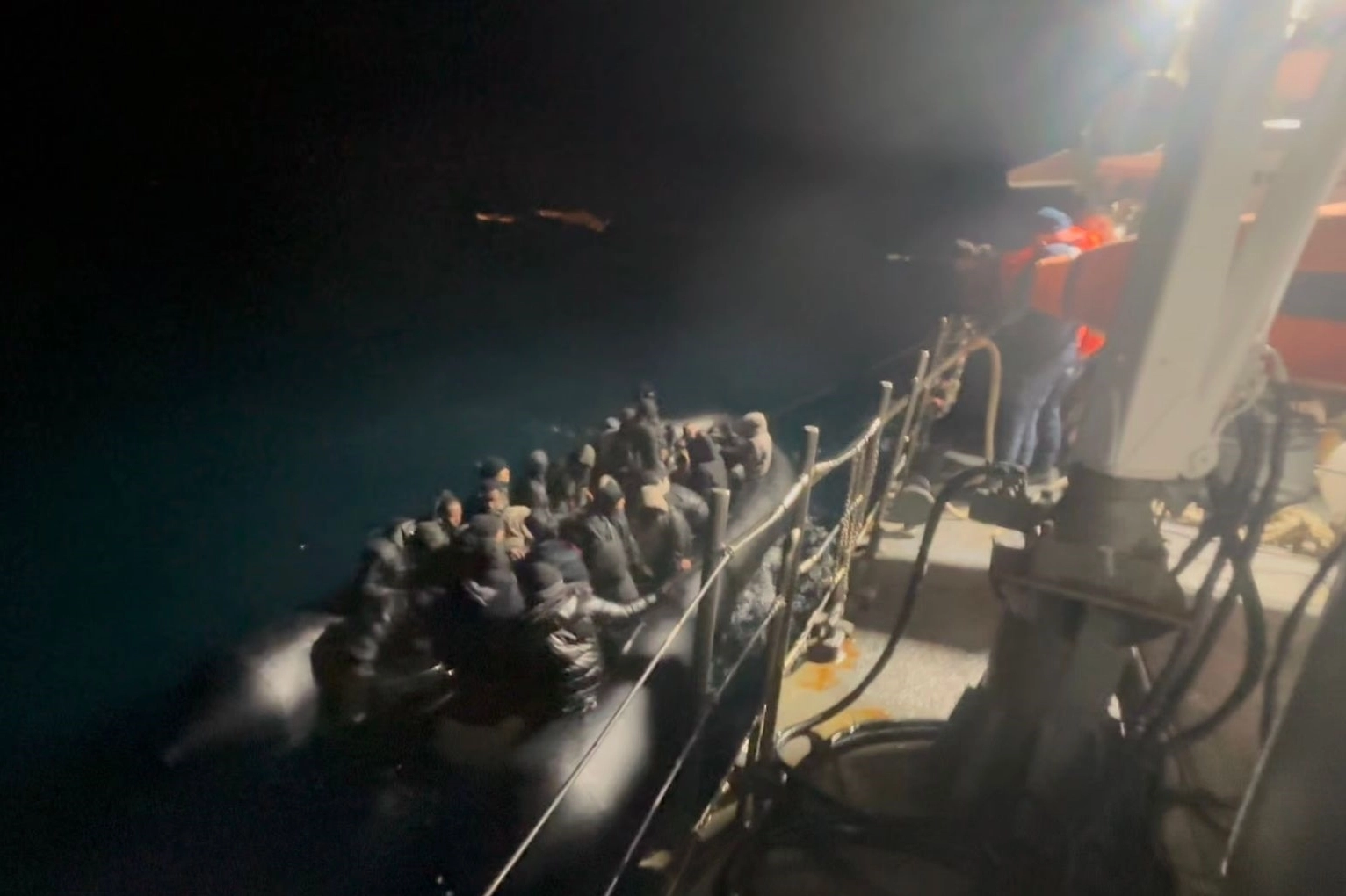 Ekiplerce durdurulan lastik bottaki 7'si çocuk 50 düzensiz göçmen yakalandı.