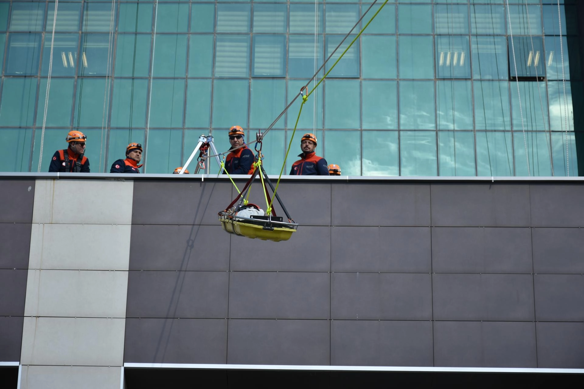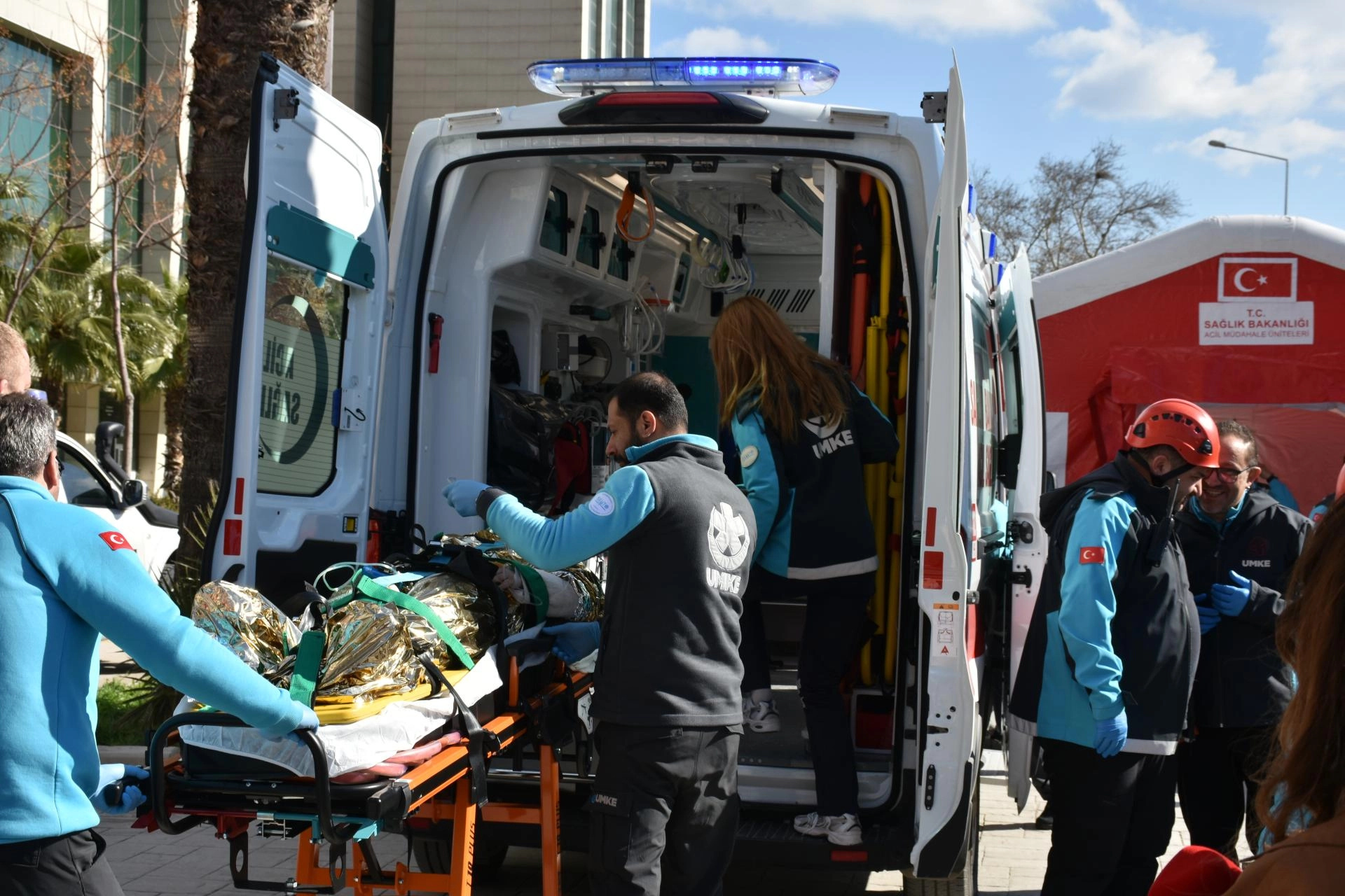 Tatbikata AFAD, UMKE, polis ve itfaiye ekipleri katıldı.