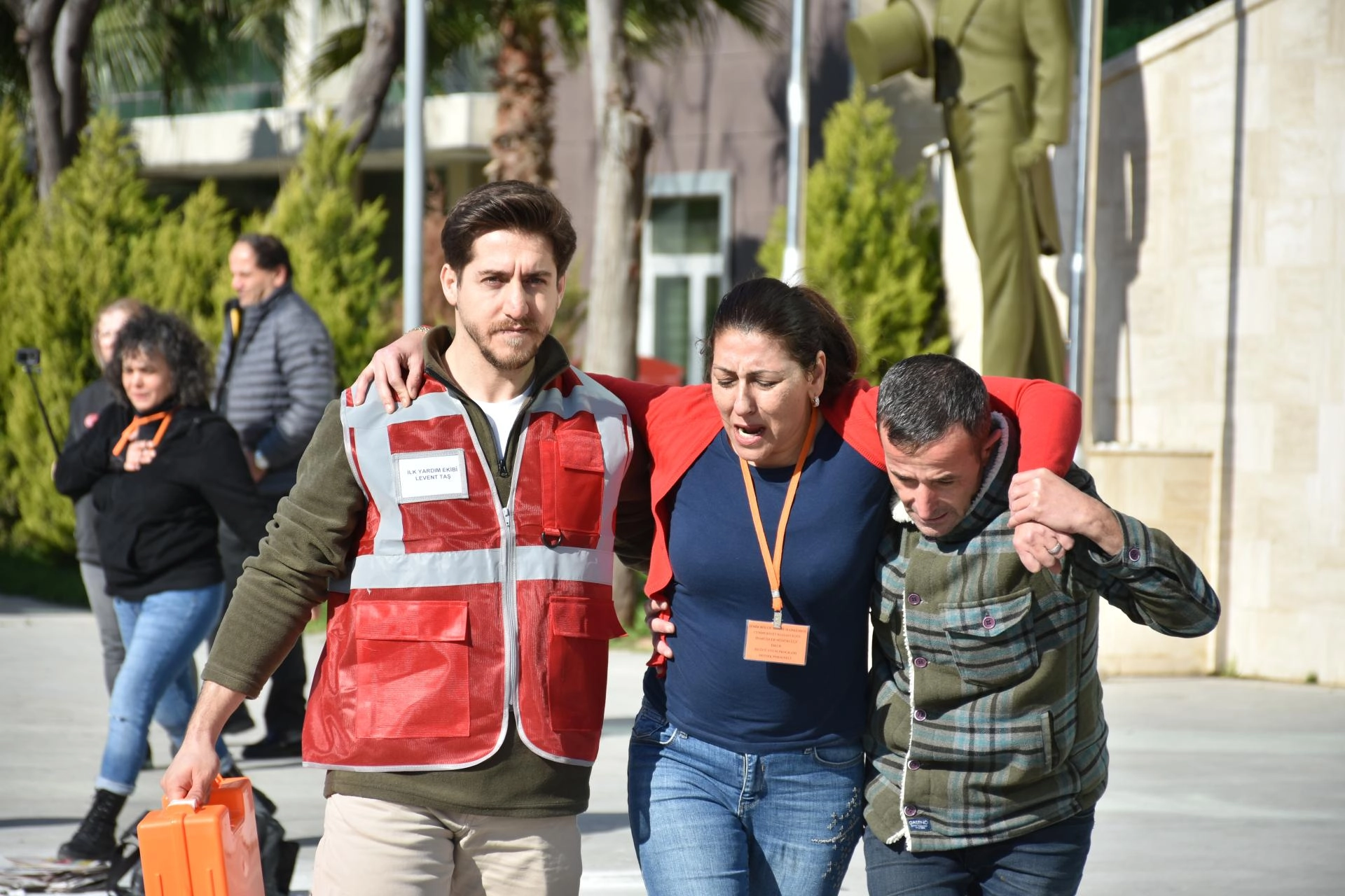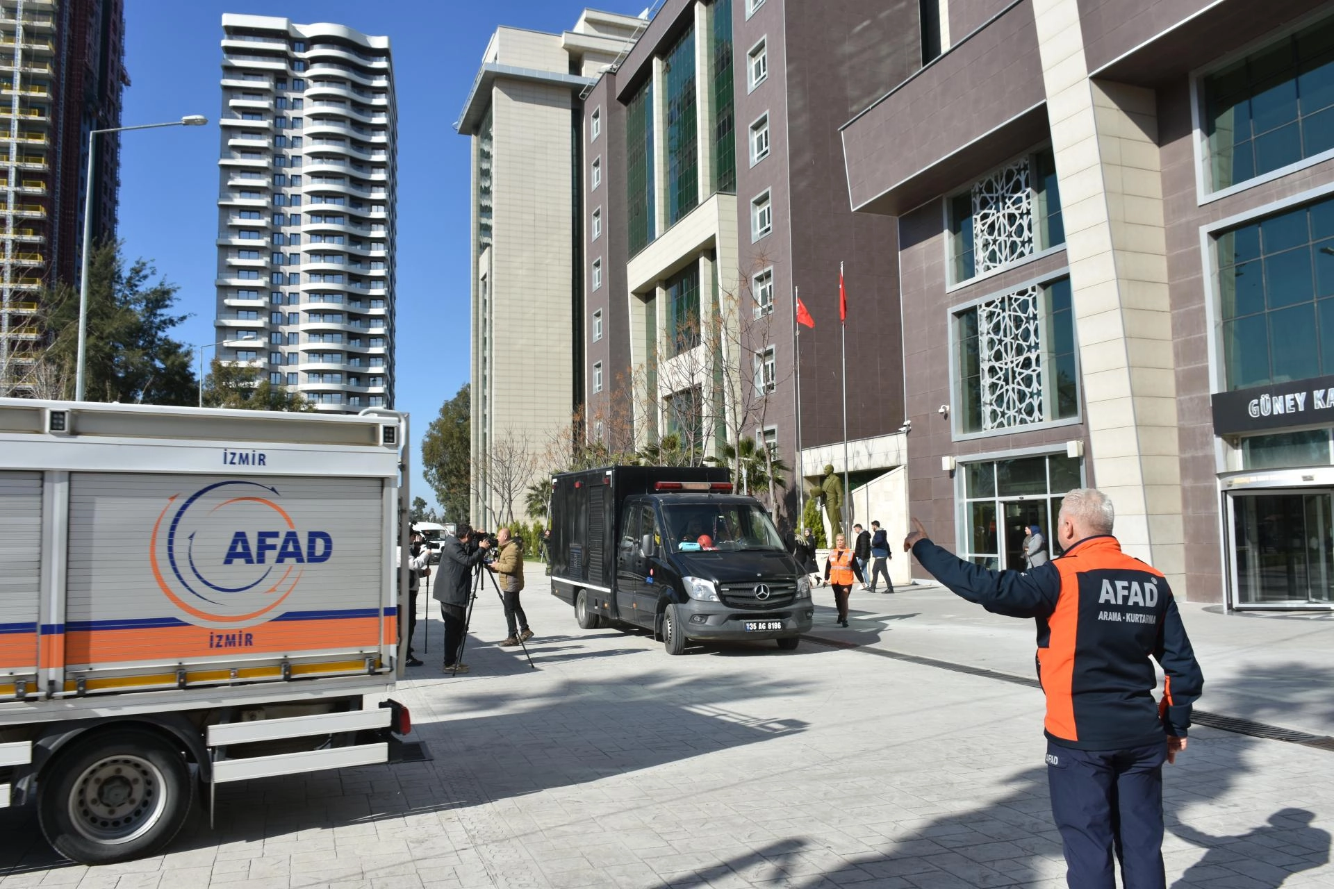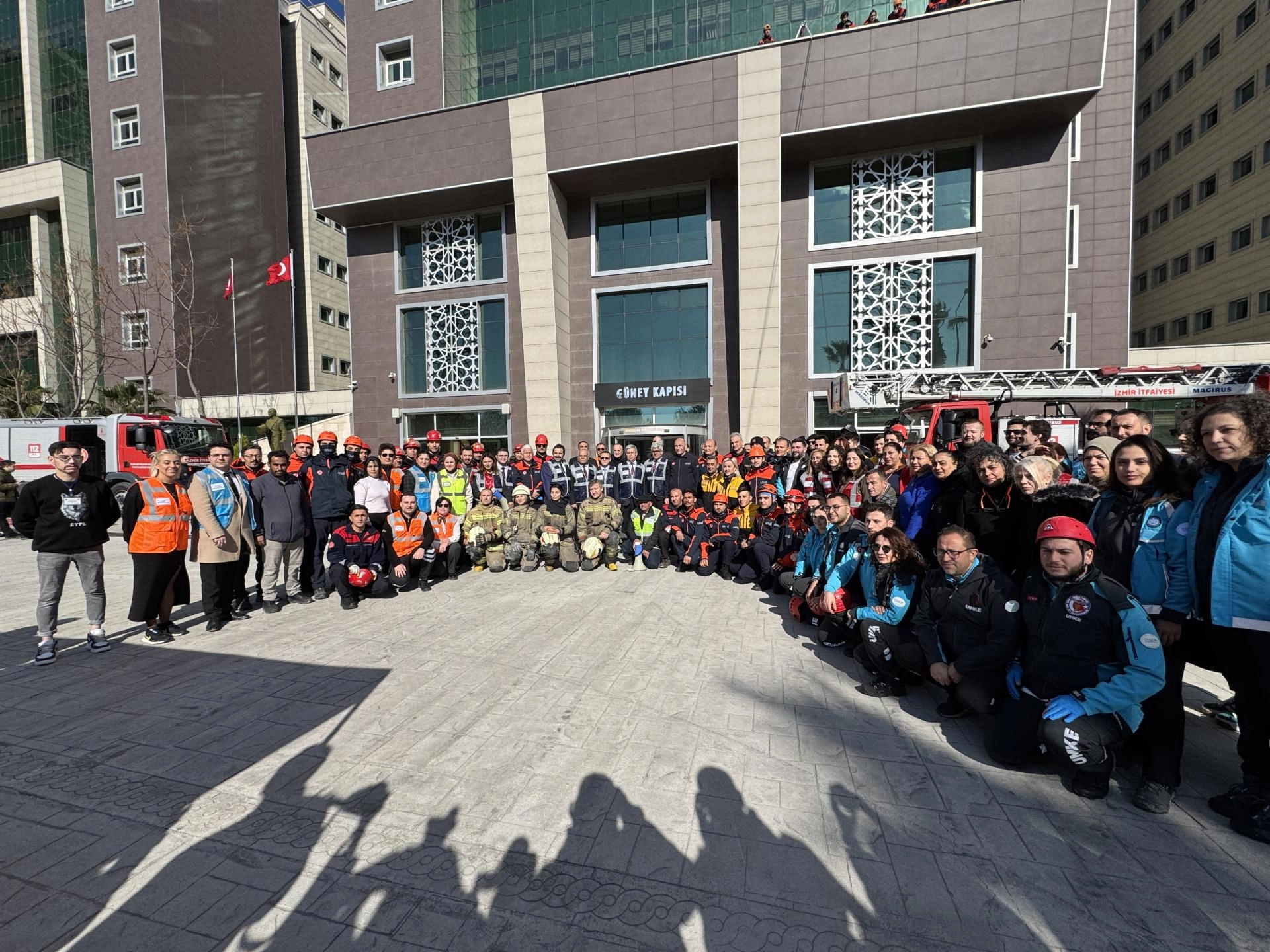 Tatbikatı AFAD İzmir İl Müdürü Nazif Ekinci, İzmir Bölge Adliye Mahkemesi Komisyon Başkanı İdris Kizir, İzmir Bölge İdare Mahkemesi Başkanı Mustafa Gürsoy da takip etti.