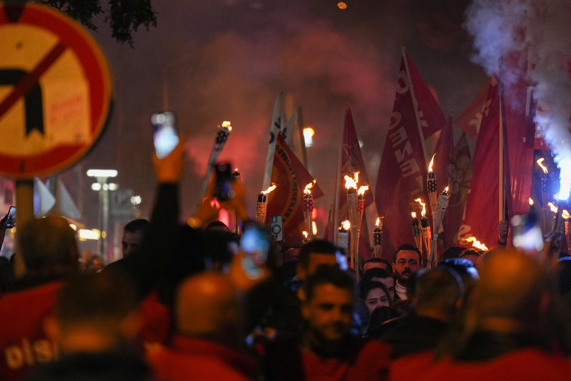Burada pankart açan ve ellerinde meşalelerle yürüyen grup, davul eşliğinde çeşitli sloganlar attı ve Kıbrıs Şehitleri Caddesi'ndeki Türkan Saylan Kültür Merkezi önüne kadar ilerledi.