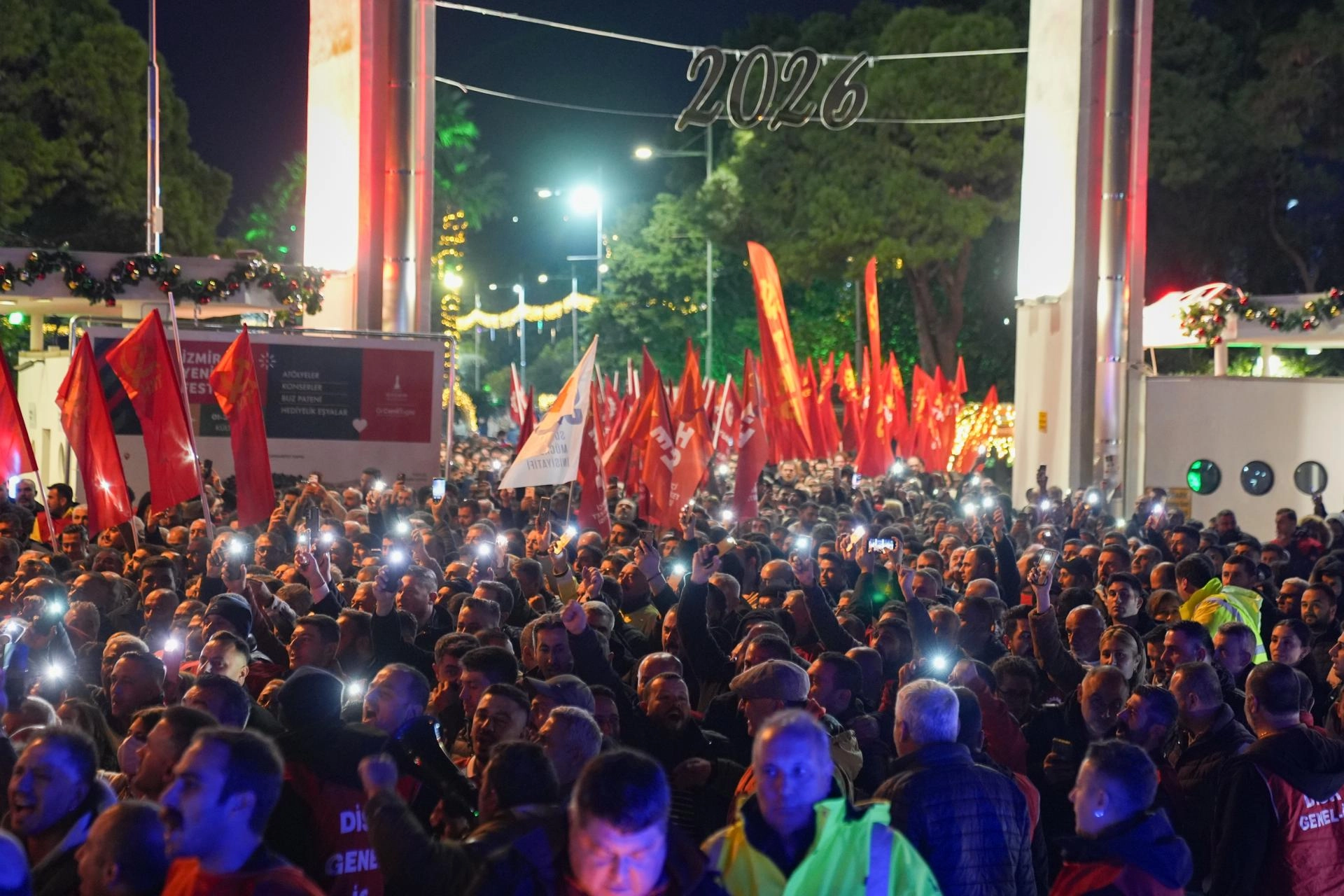 Genel-İş Sendikası üyesi işçiler ve sendika temsilcileri, Kültürpark'ın Lozan Kapısı önünde bir araya geldi.