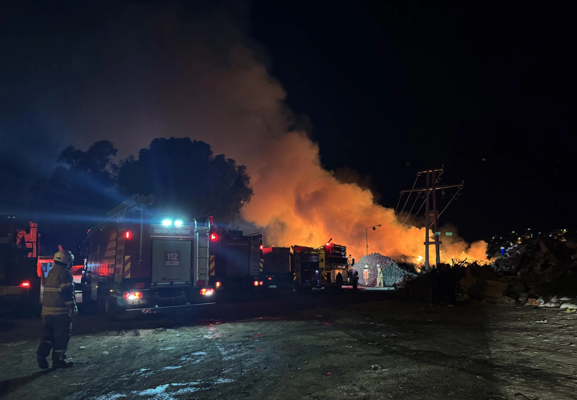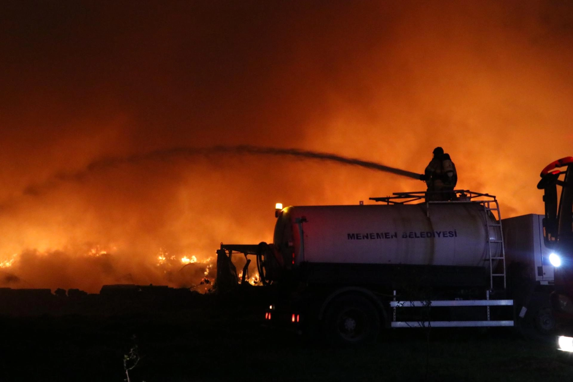 İZMİR (AA) - İzmir'in Menemen ilçesinde çöplerin depolandığı alanda çıkan yangına itfaiye ekiplerince müdahale ediliyor.