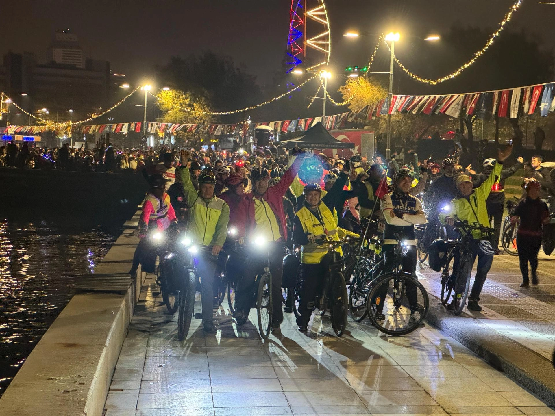 Konak Vapur İskelesi önünde 21.12'de başlayan koşuya, 500'e yakın bisikletli ile yaklaşık 2 bin kişi katıldı.