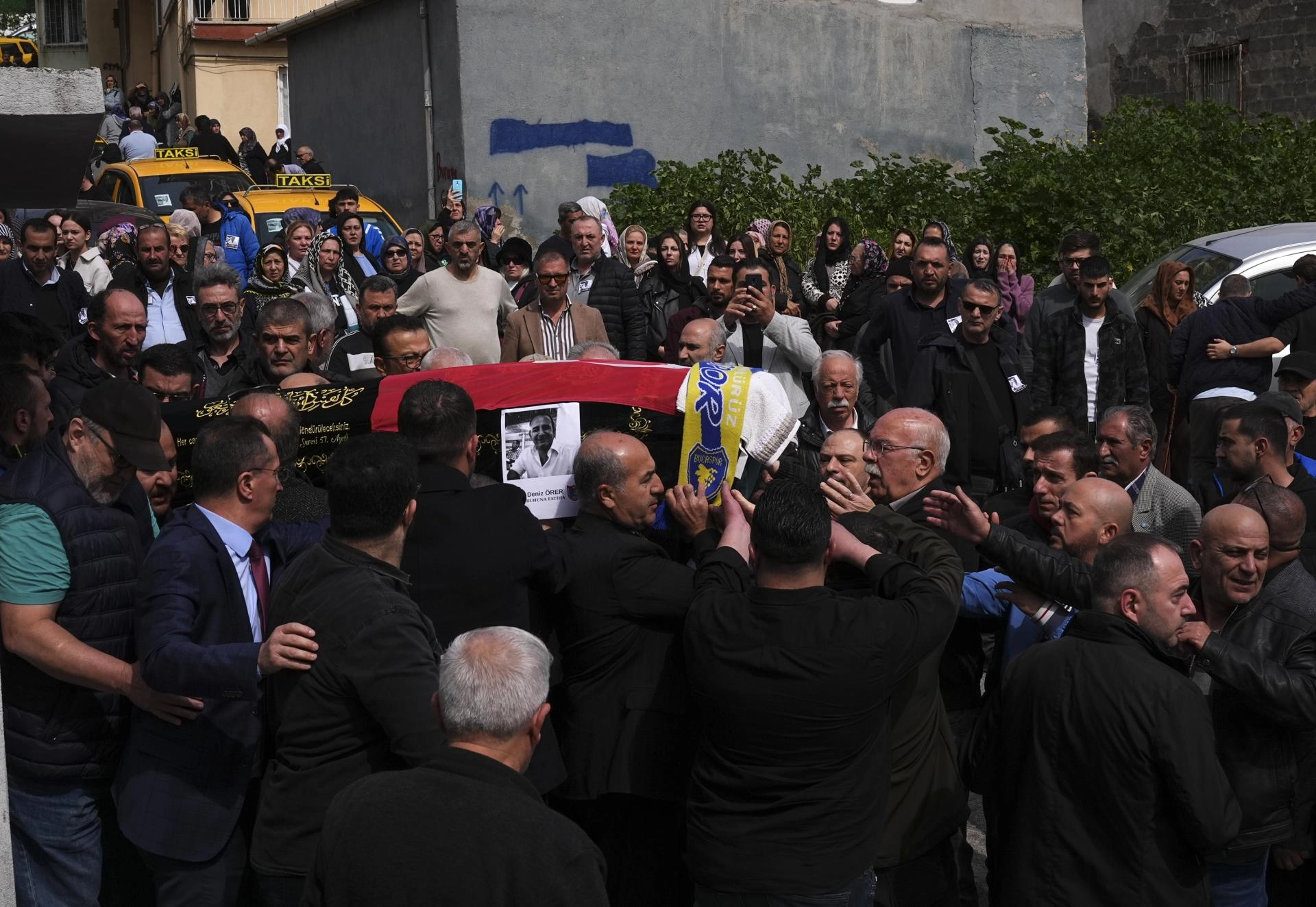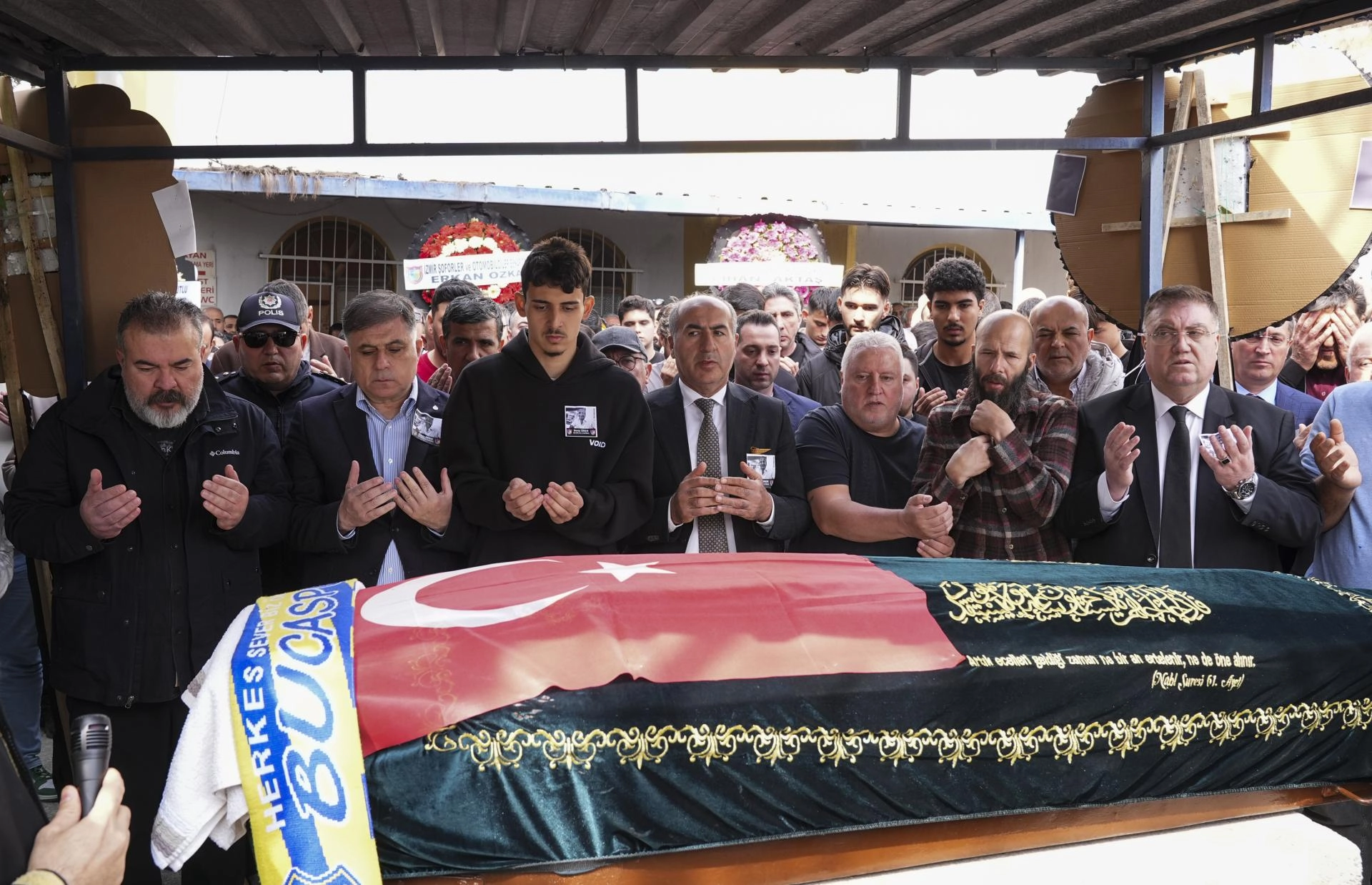 Açıklamaların ardından konvoy oluşturan taksiciler, korna çalarak Örer'in cenazesini Karşıyaka ilçesindeki Örnekköy Gasilhane Şefliği'nden teslim aldı.