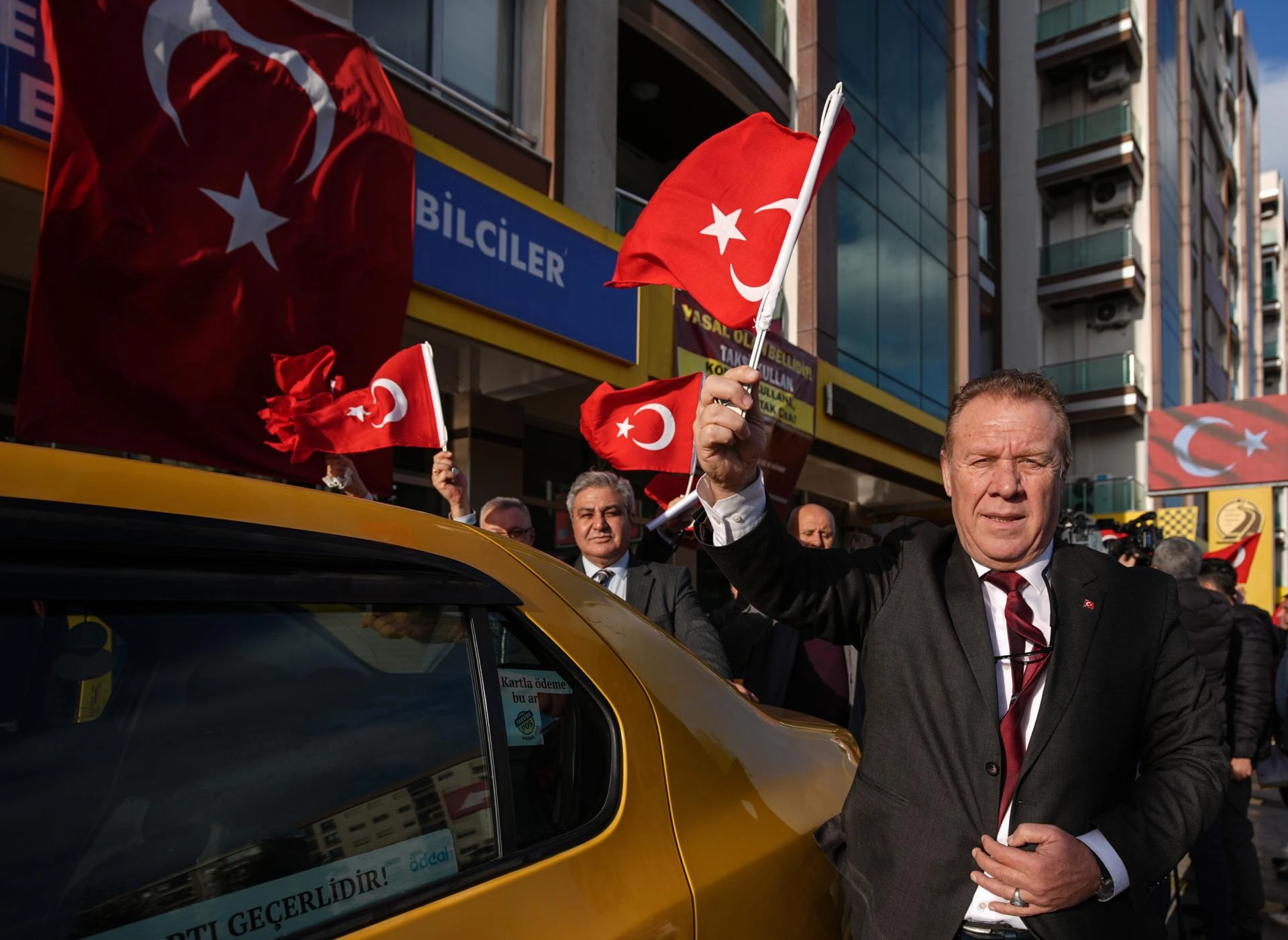 Açıklamaların ardından konvoy oluşturan taksiciler korna çalıp ellerindeki Türk bayraklarını salladı.