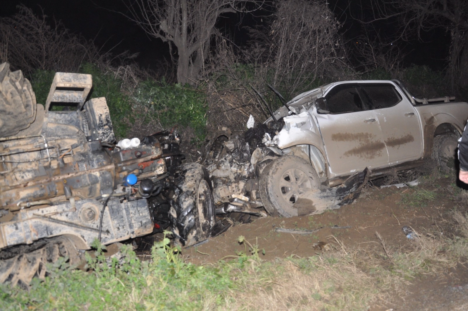 Mahmut B. (51) yönetimindeki 20 L 7889 plakalı traktör ile karşı yönden gelen Ege A. (19) idaresindeki 35 ALB 227 plakalı pikap, Ovakent Mahallesi Yanıkkırı mevkisinde çarpıştı.
