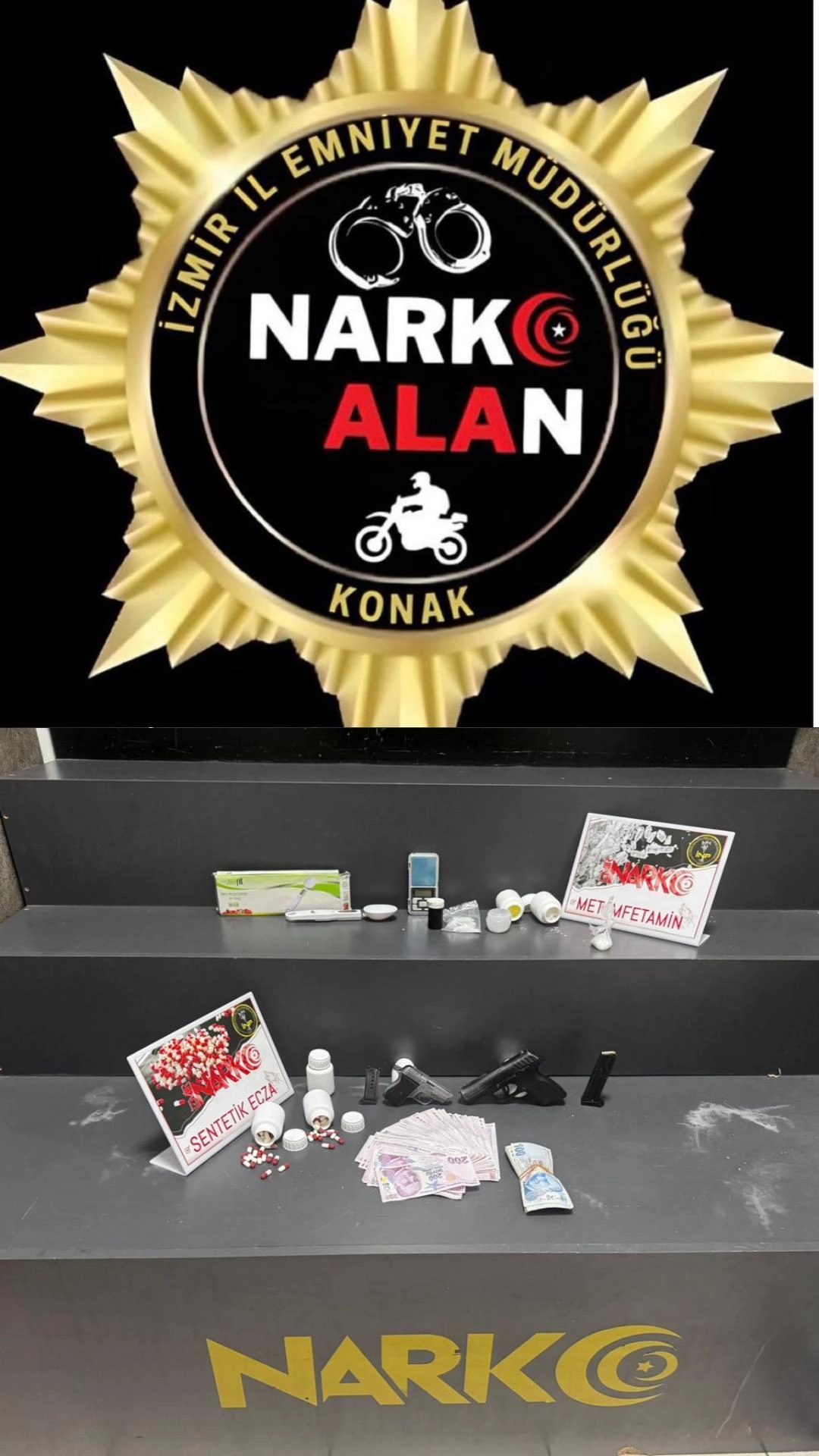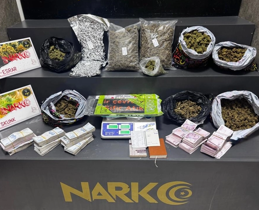 Aramalarda, 8 kilogram skunk, 200 gram sentetik uyuşturucu, 180 sentetik ecza, 3 hassas terazi, 2 ruhsatsız tabanca ve 5 fişek ile suçtan elde edildiği değerlendirilen 371 bin 500 lira ele geçirildi.