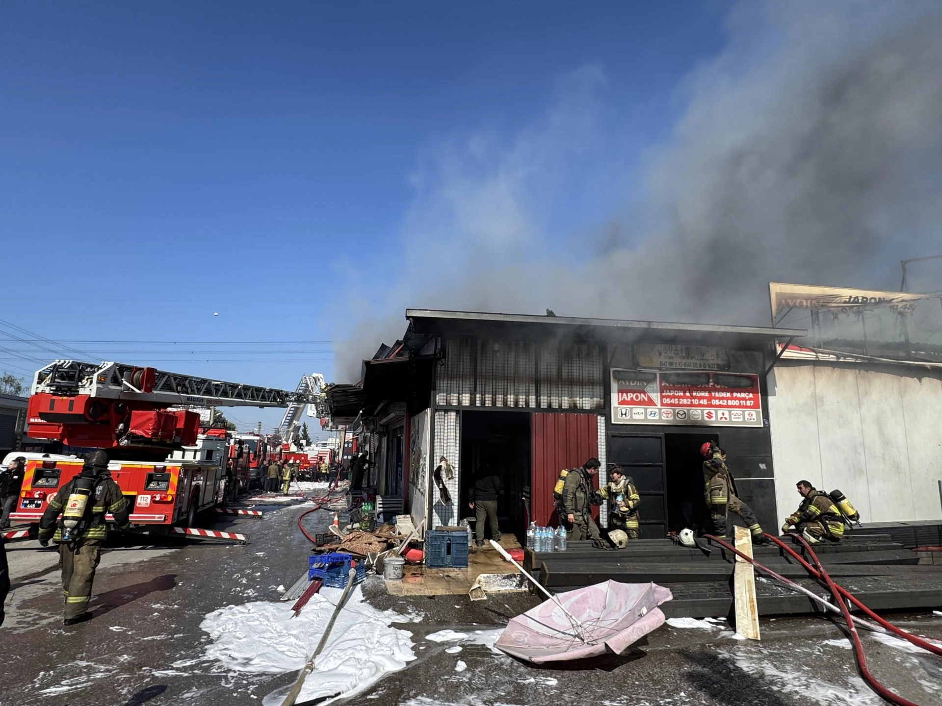 İtfaiye ekiplerinin müdahalesiyle yangın kontrol altına alındı, iş yerlerinde hasar meydana geldi.