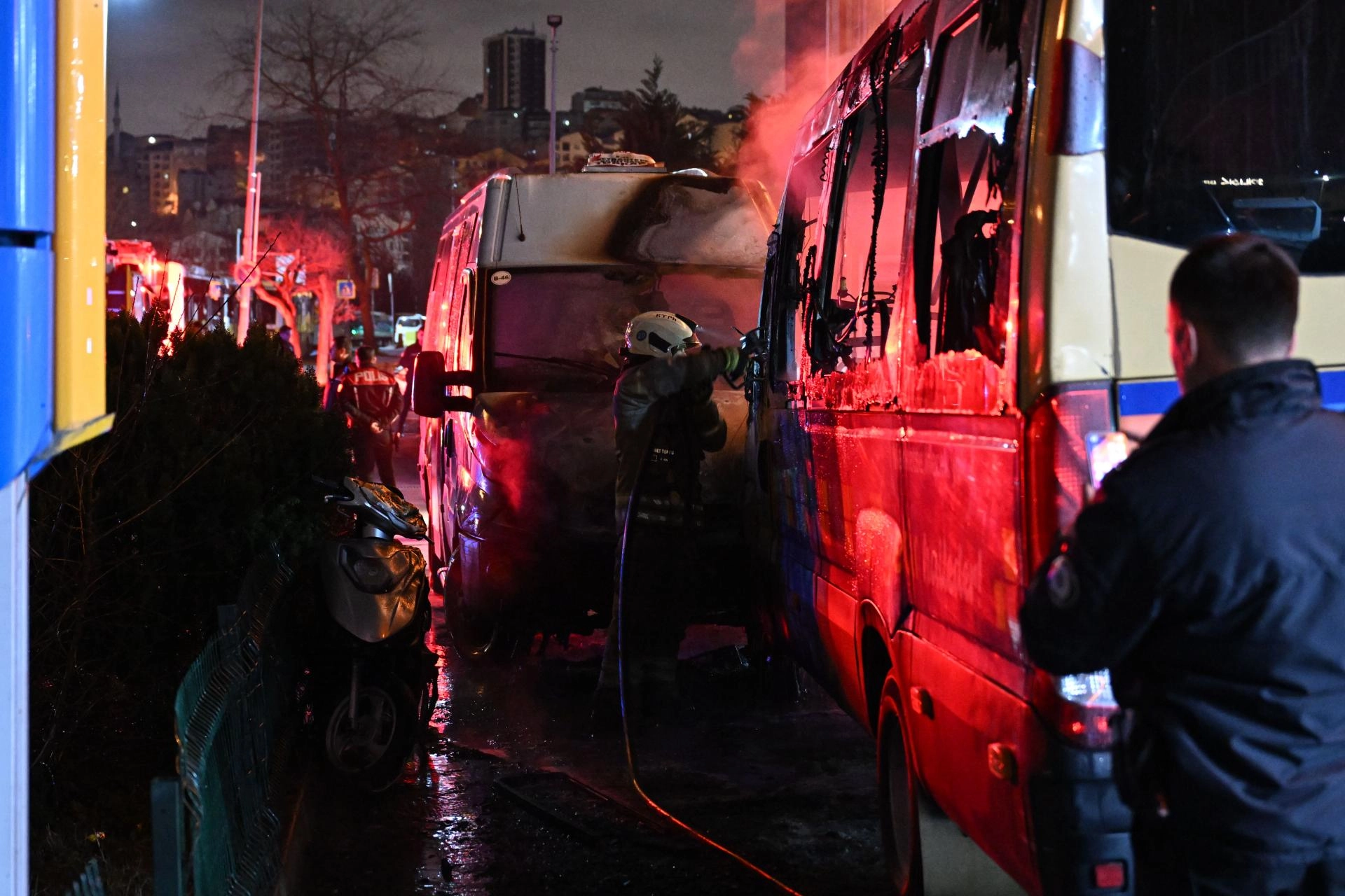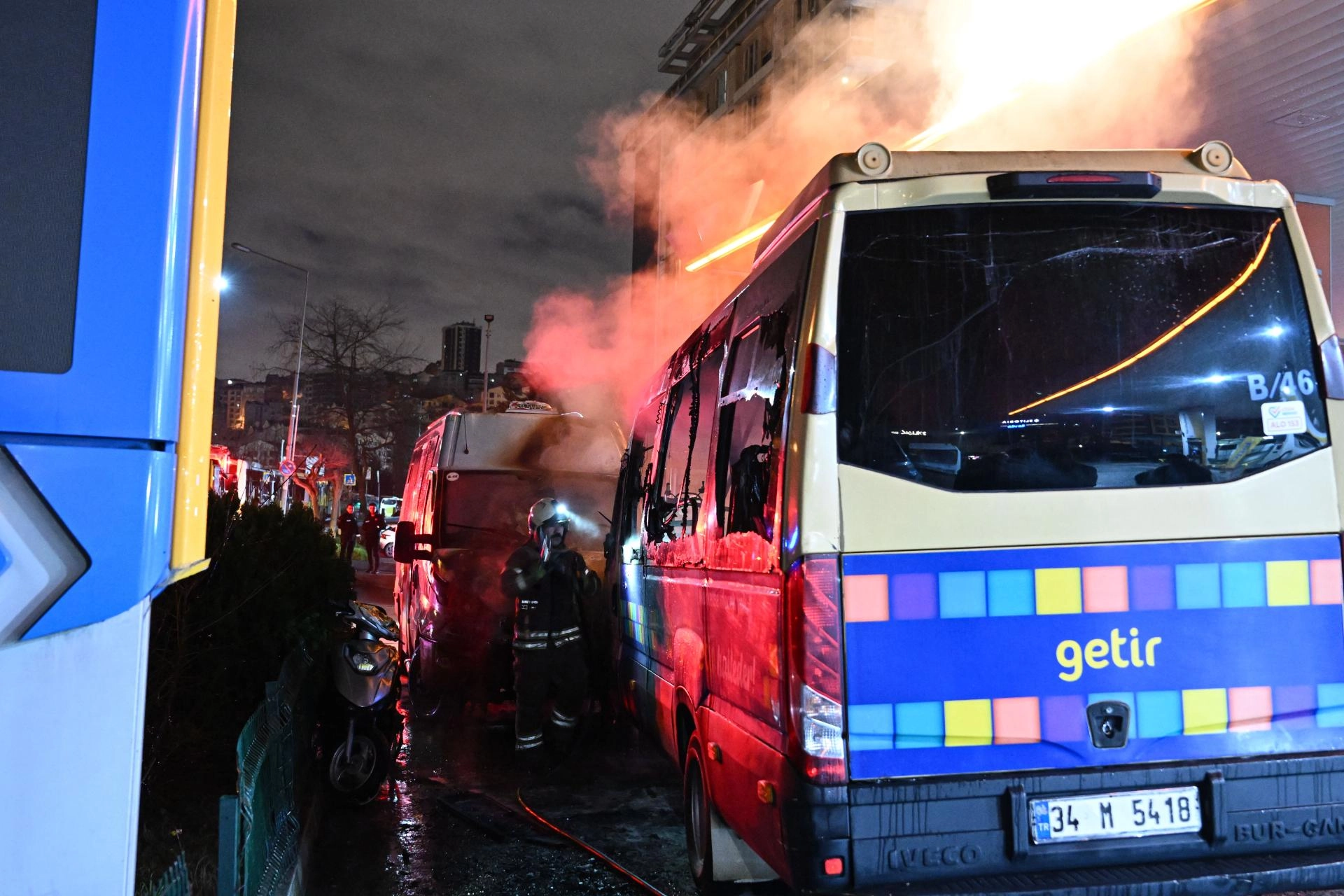Kısa sürede minibüsün tamamını saran alevler aracın yanında bulunan diğer minibüse de sıçradı.