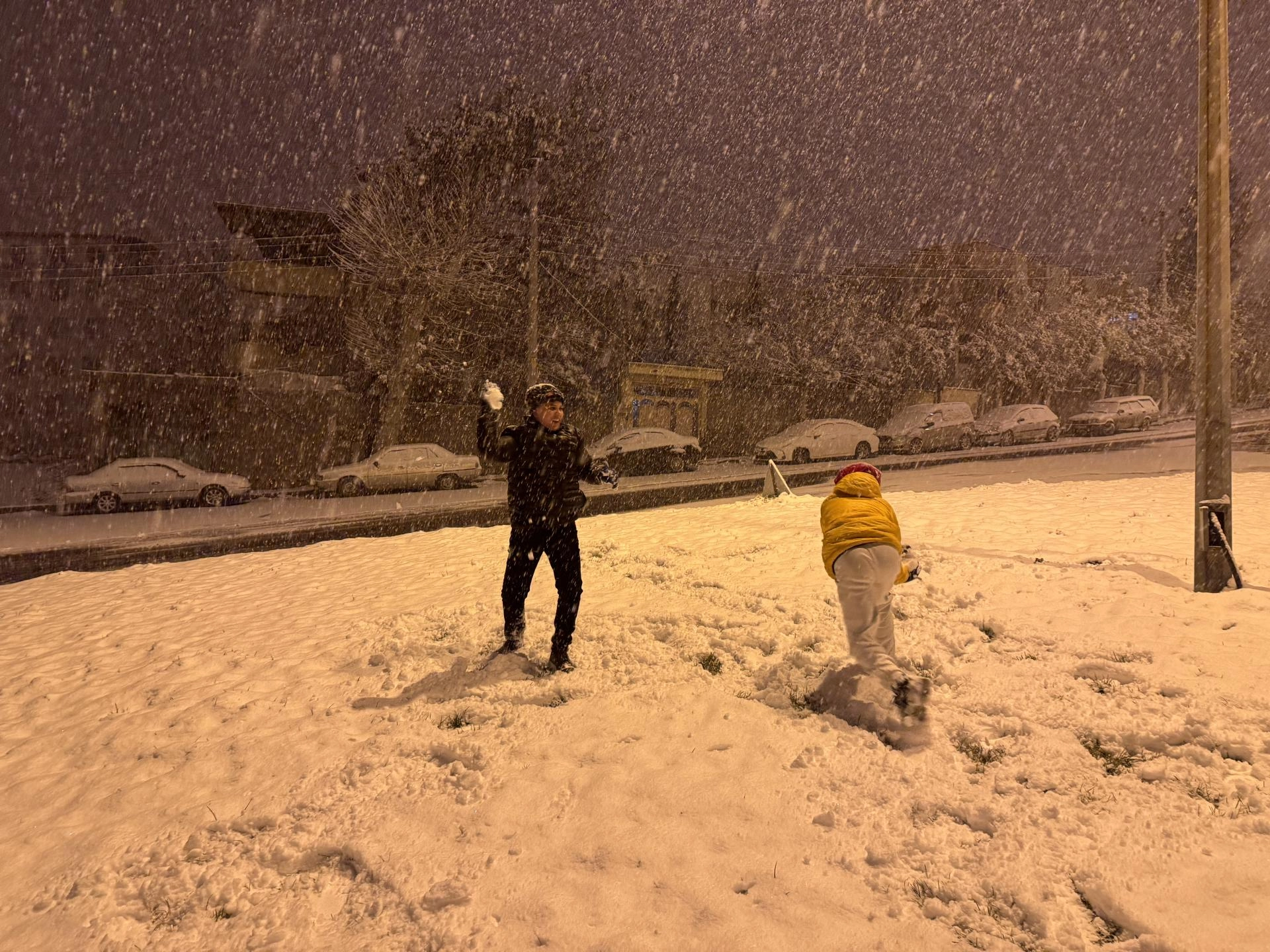 Kar yağışını fırsat bilen çocuklar, aileleriyle sokağa çıkarak kar topu oynadı.