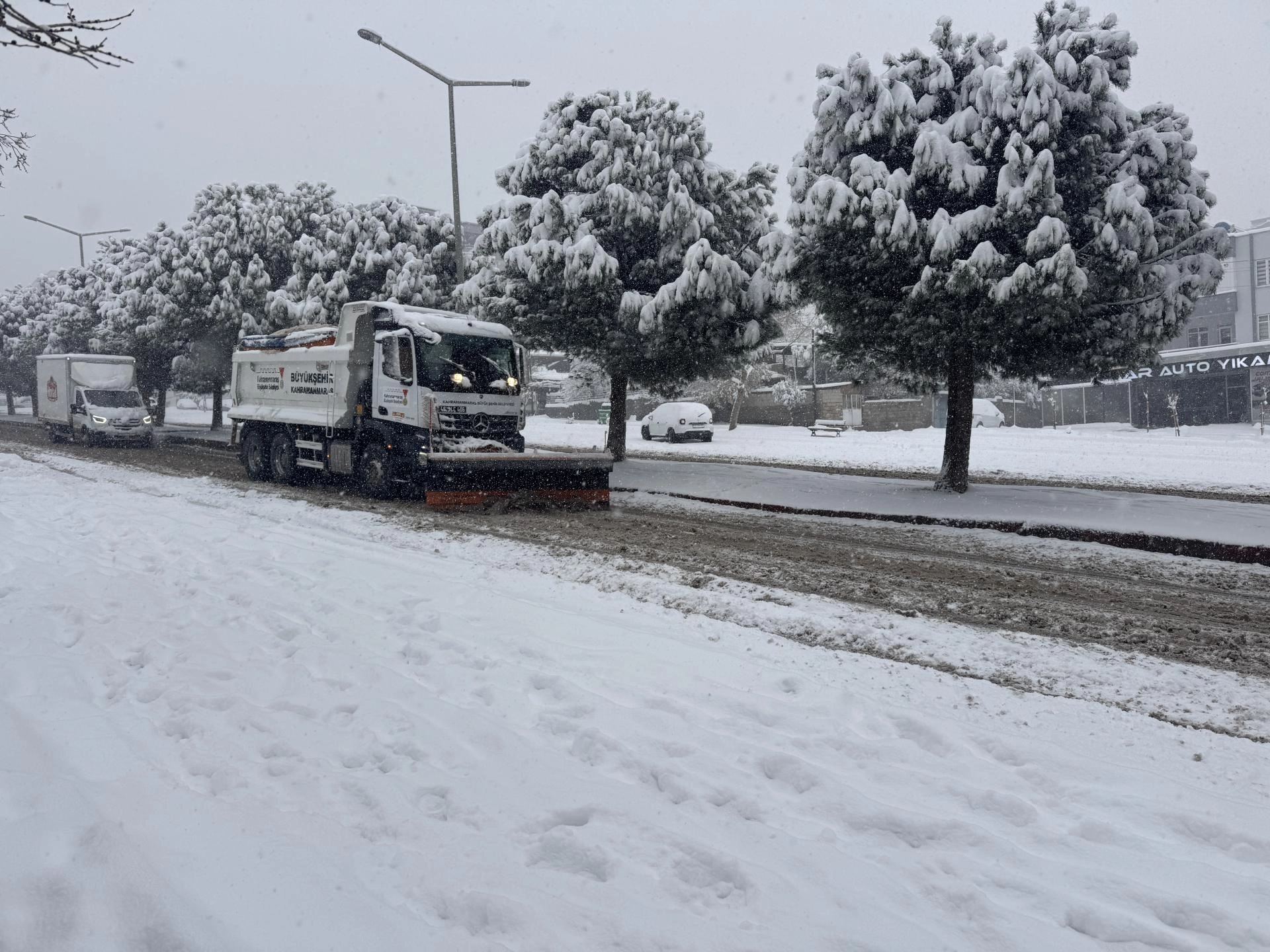 Büyükşehir Belediyesi ve Karayolları ekipleri, olumsuzluk yaşanmaması için yollarda kar küreme ve tuzlama çalışması başlattı.