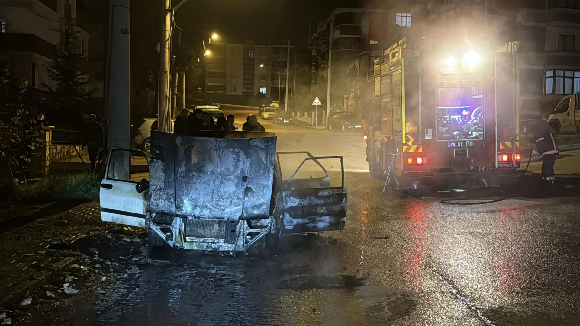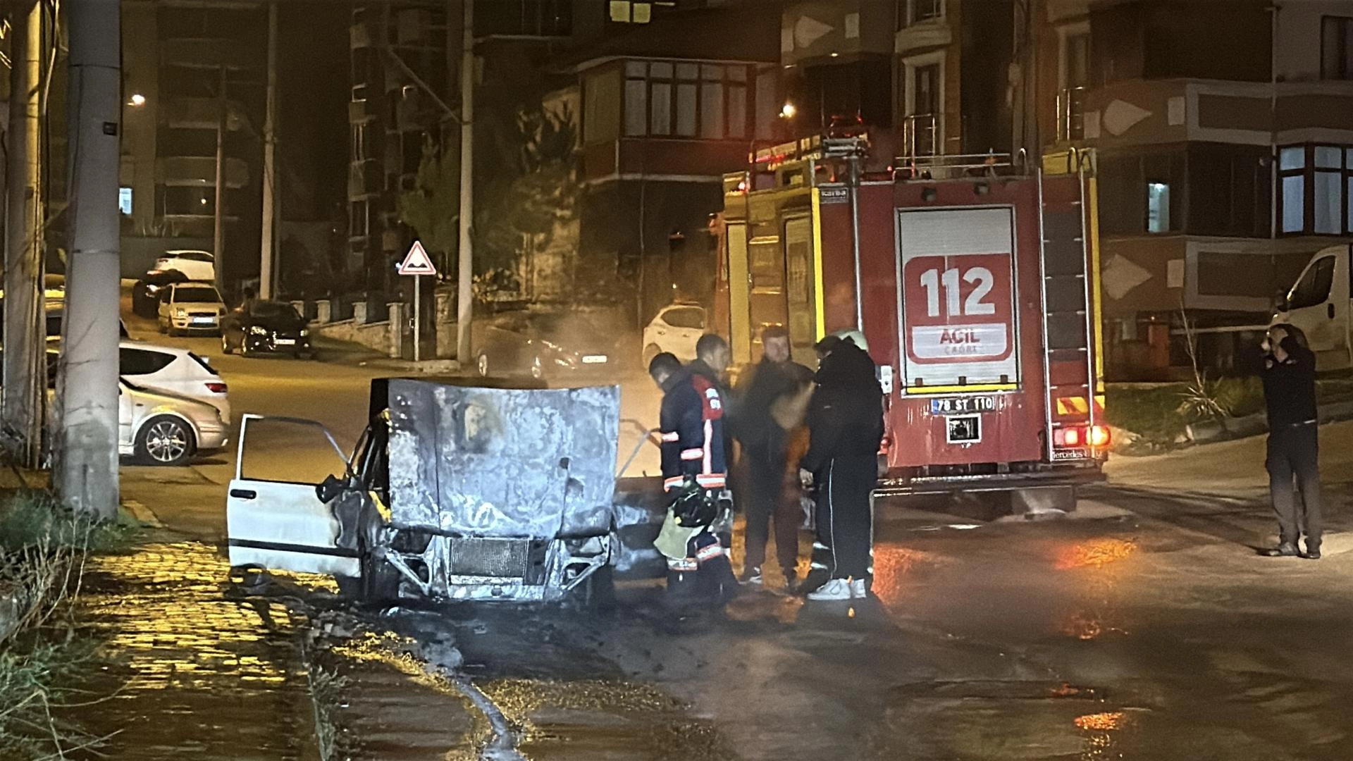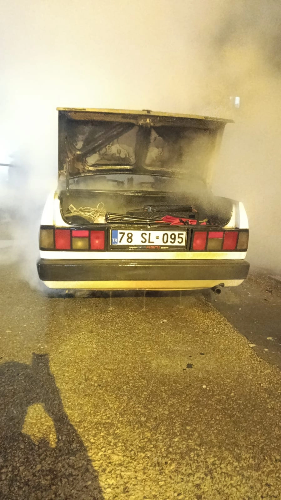Emek Mahallesi Ihlamur Sokak'ta Ş.Y'ye ait 78 SL 095 plakalı park halindeki otomobilde, henüz belirlenemeyen nedenle yangın çıktı.