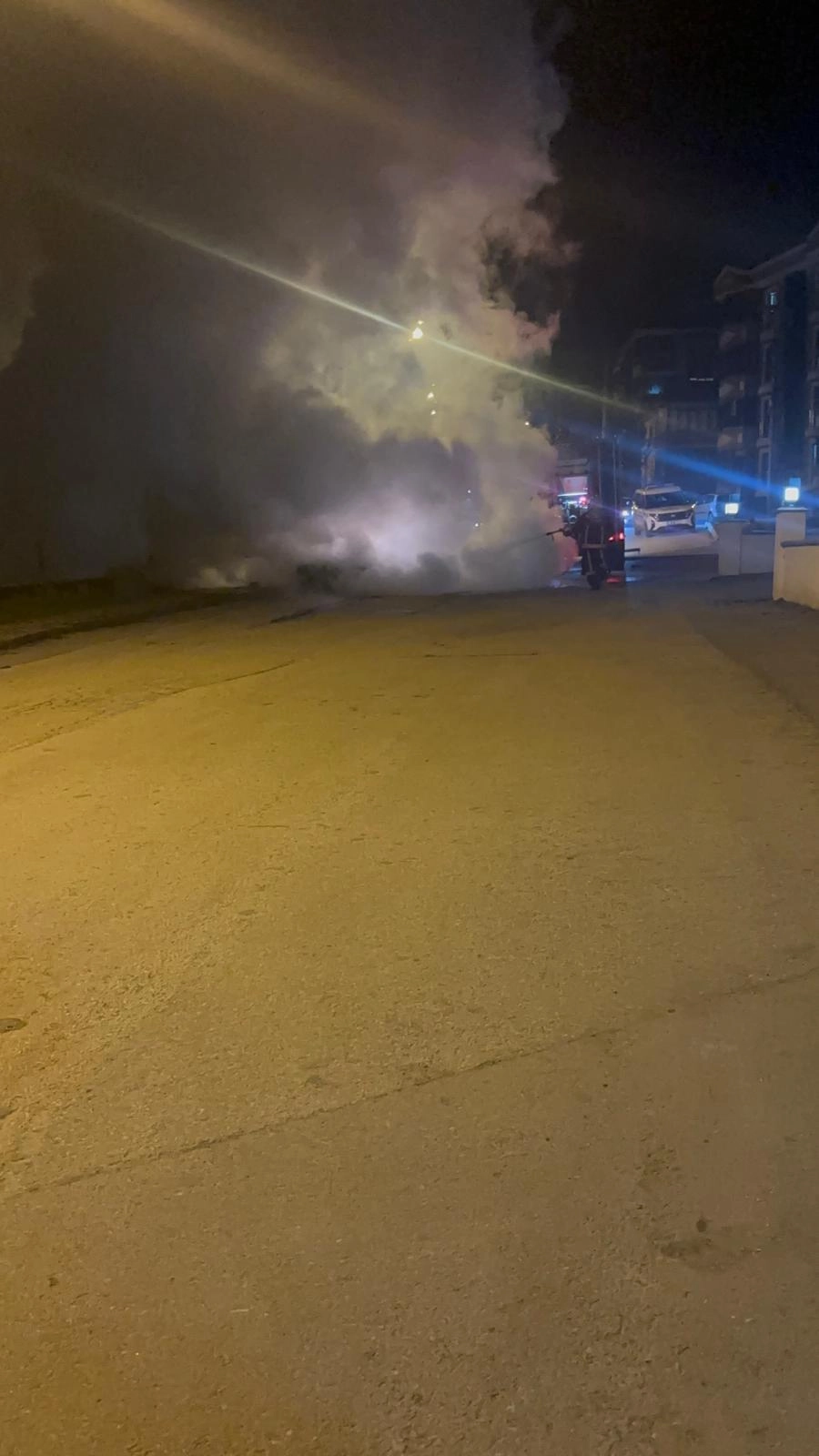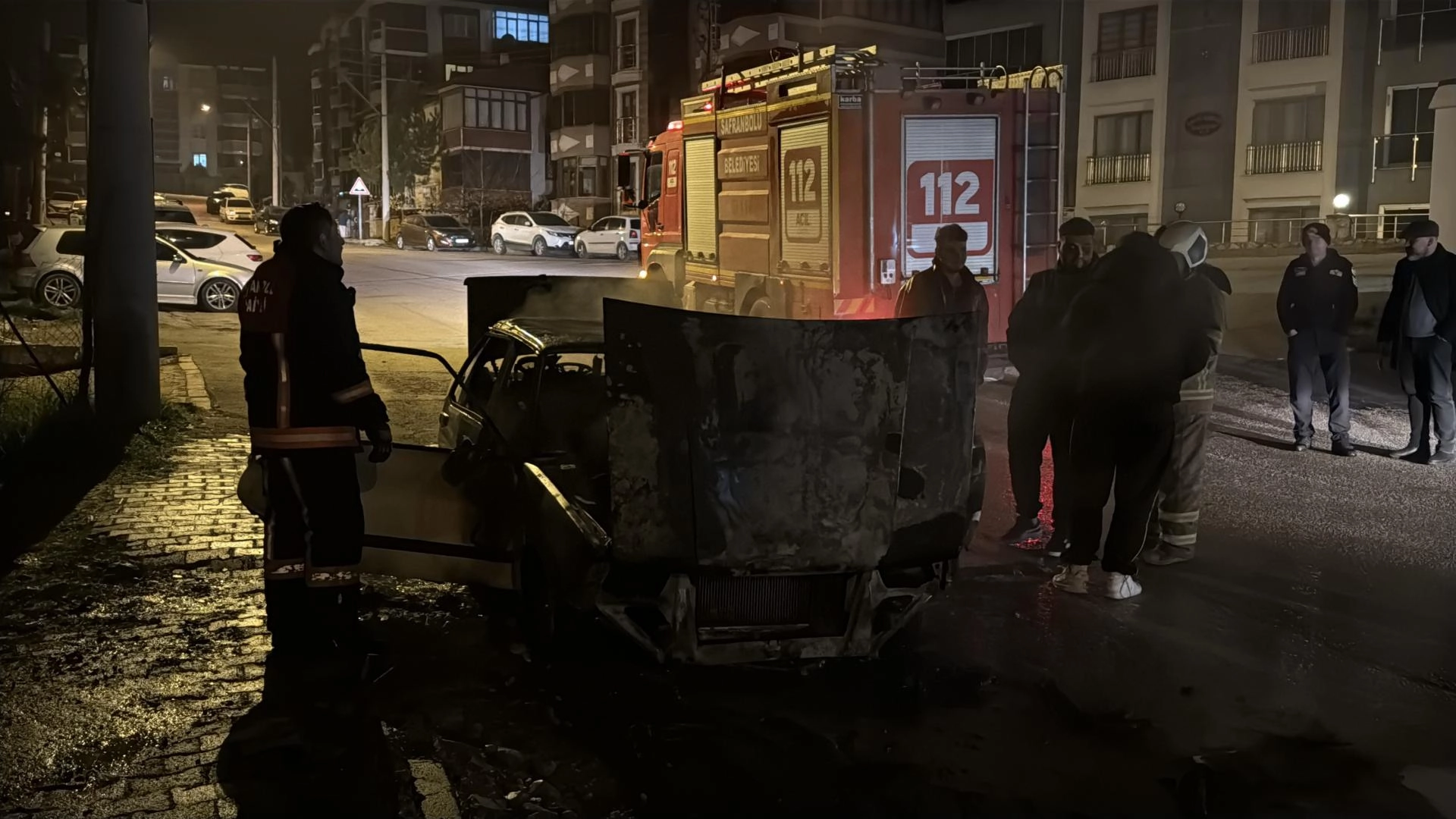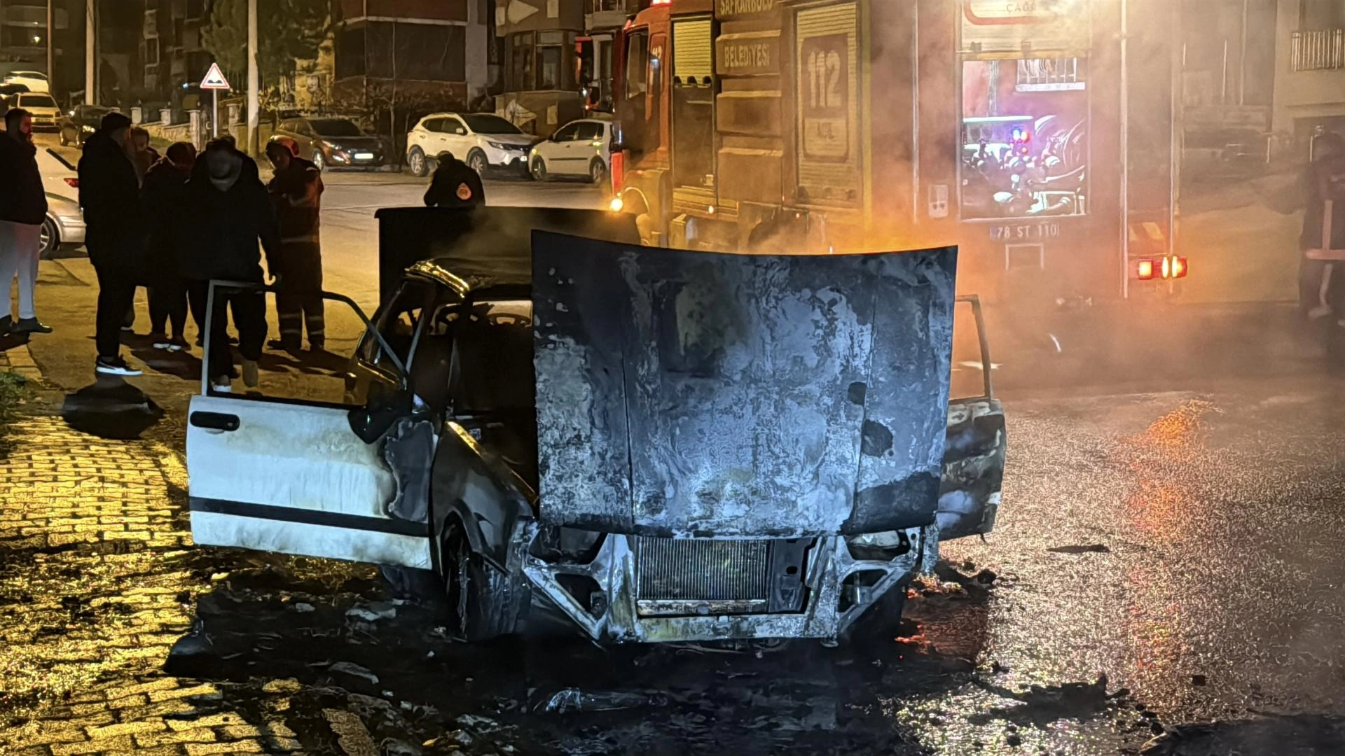Emek Mahallesi Ihlamur Sokak'ta Ş.Y'ye ait 78 SL 095 plakalı park halindeki otomobilde, henüz belirlenemeyen nedenle yangın çıktı.