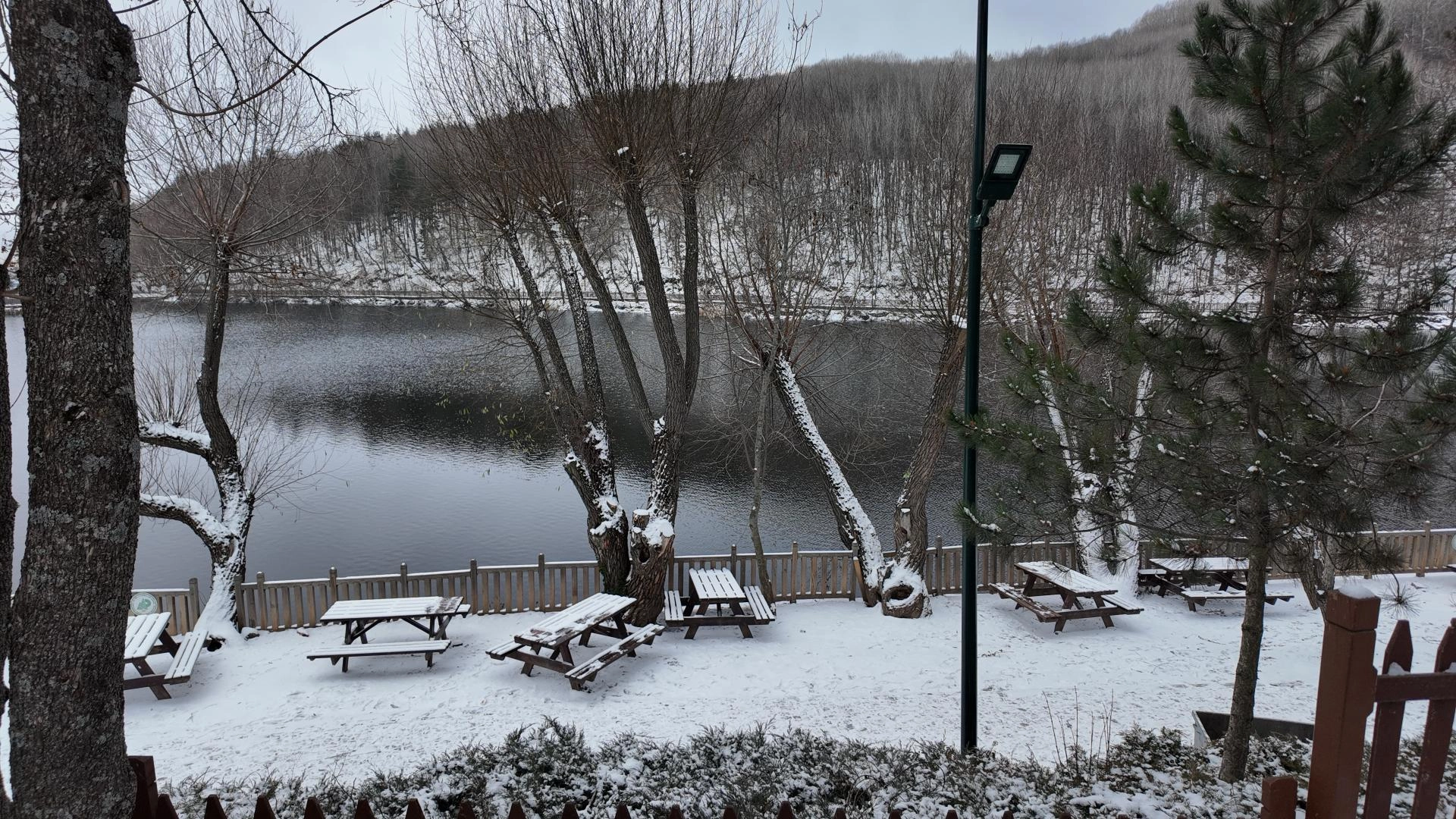 ANKARA (AA) - Ankara'nın Çubuk ilçesinde bulunan Karagöl Tabiat Parkı, mevsimin ilk kar yağışıyla beyaza büründü.