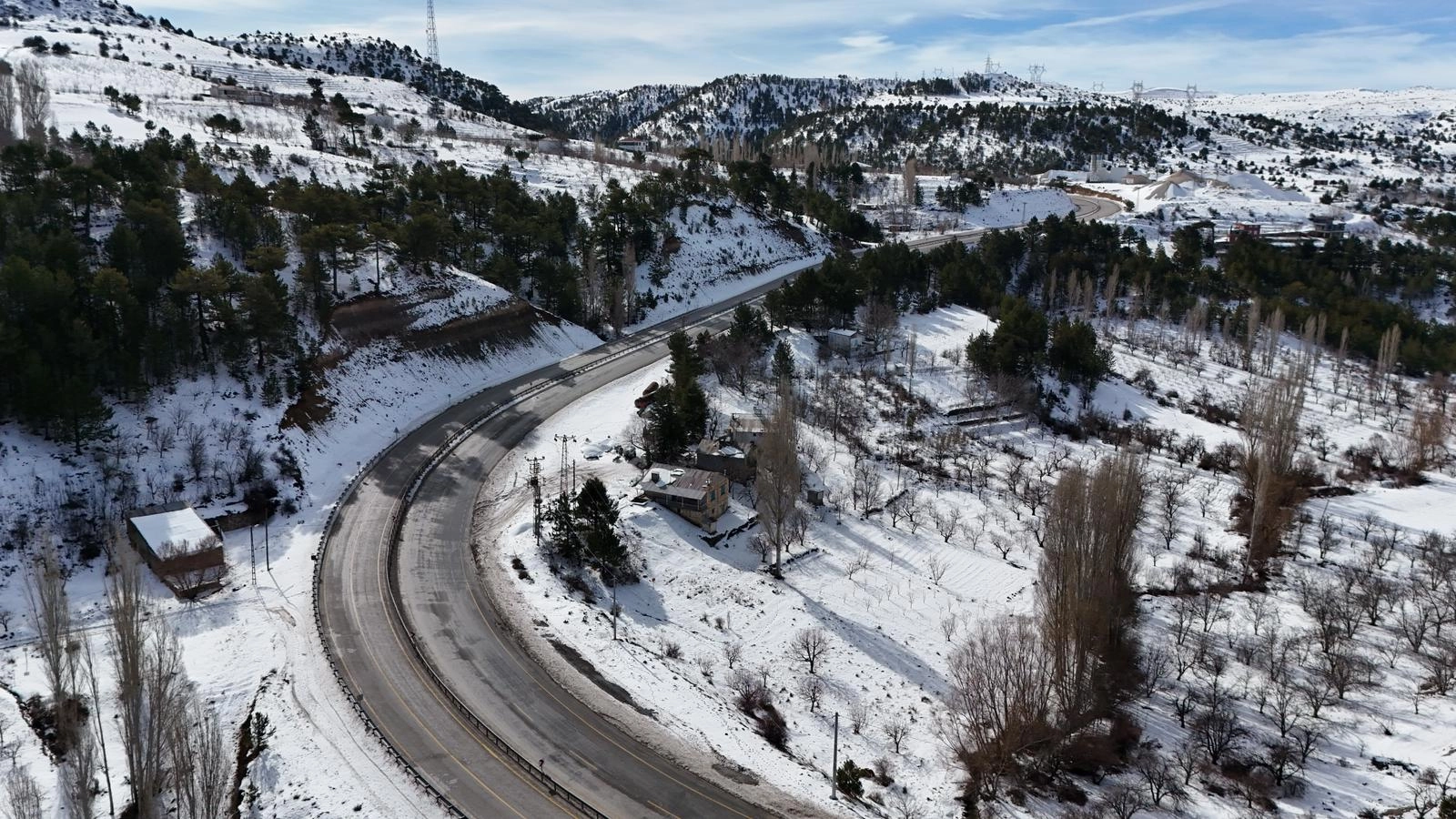 KARAMAN (AA) - Karaman'da etkili olan kar yağışıyla beyaza bürünen köyler dronla görüntülendi.