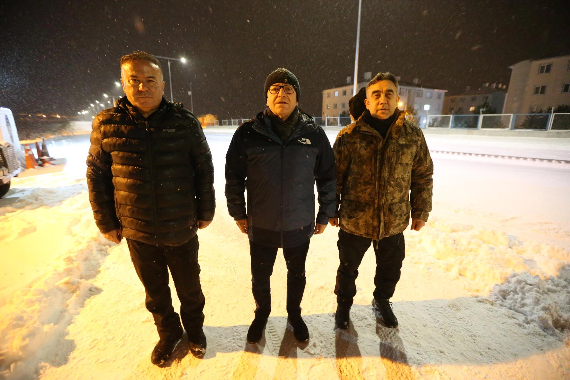 KARS (AA) - Kars Valisi Ziya Polat, kentte etkili olan yoğun kar yağışı nedeniyle çalışmalarını sürdüren ekipleri ziyaret etti.