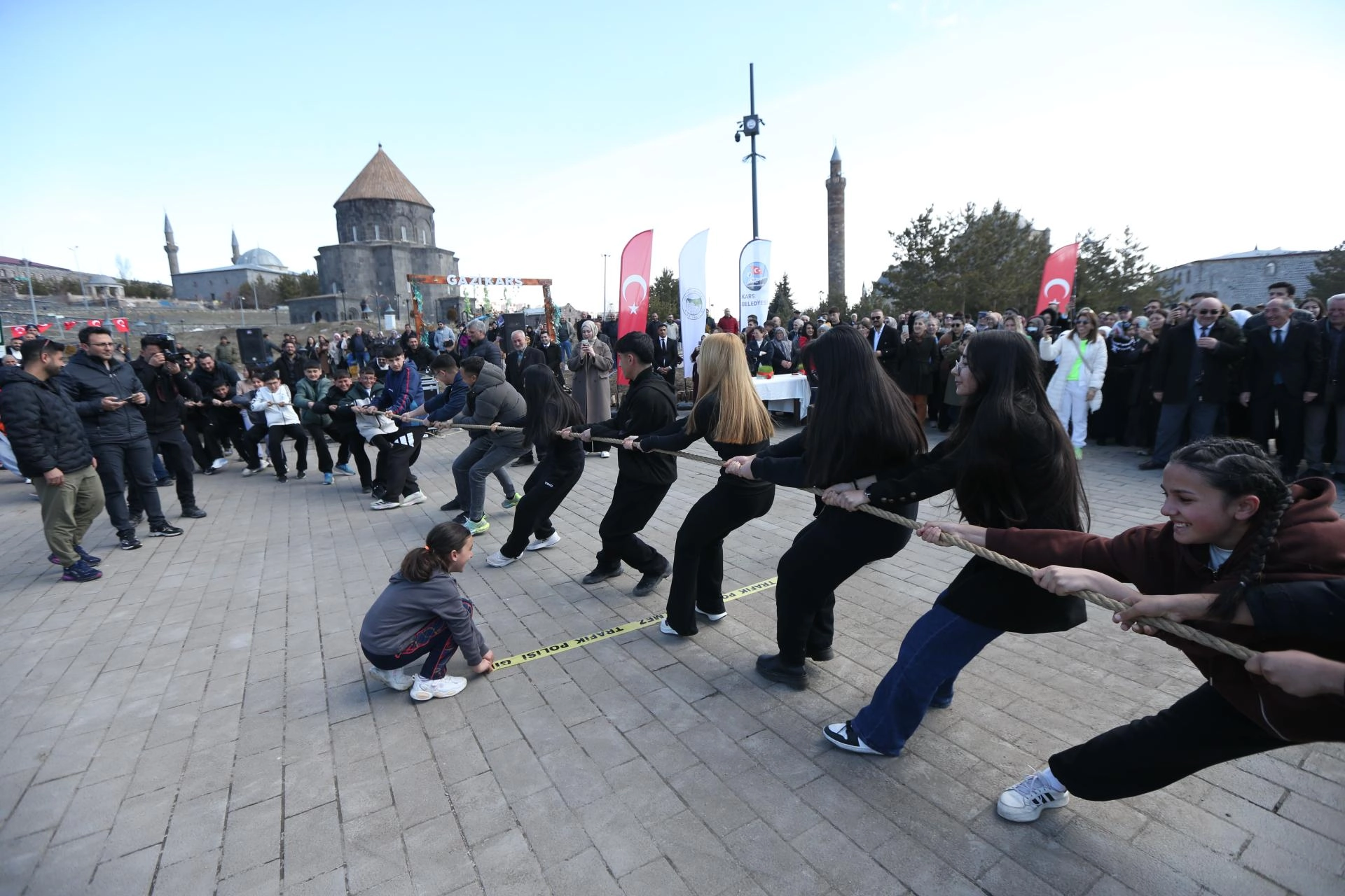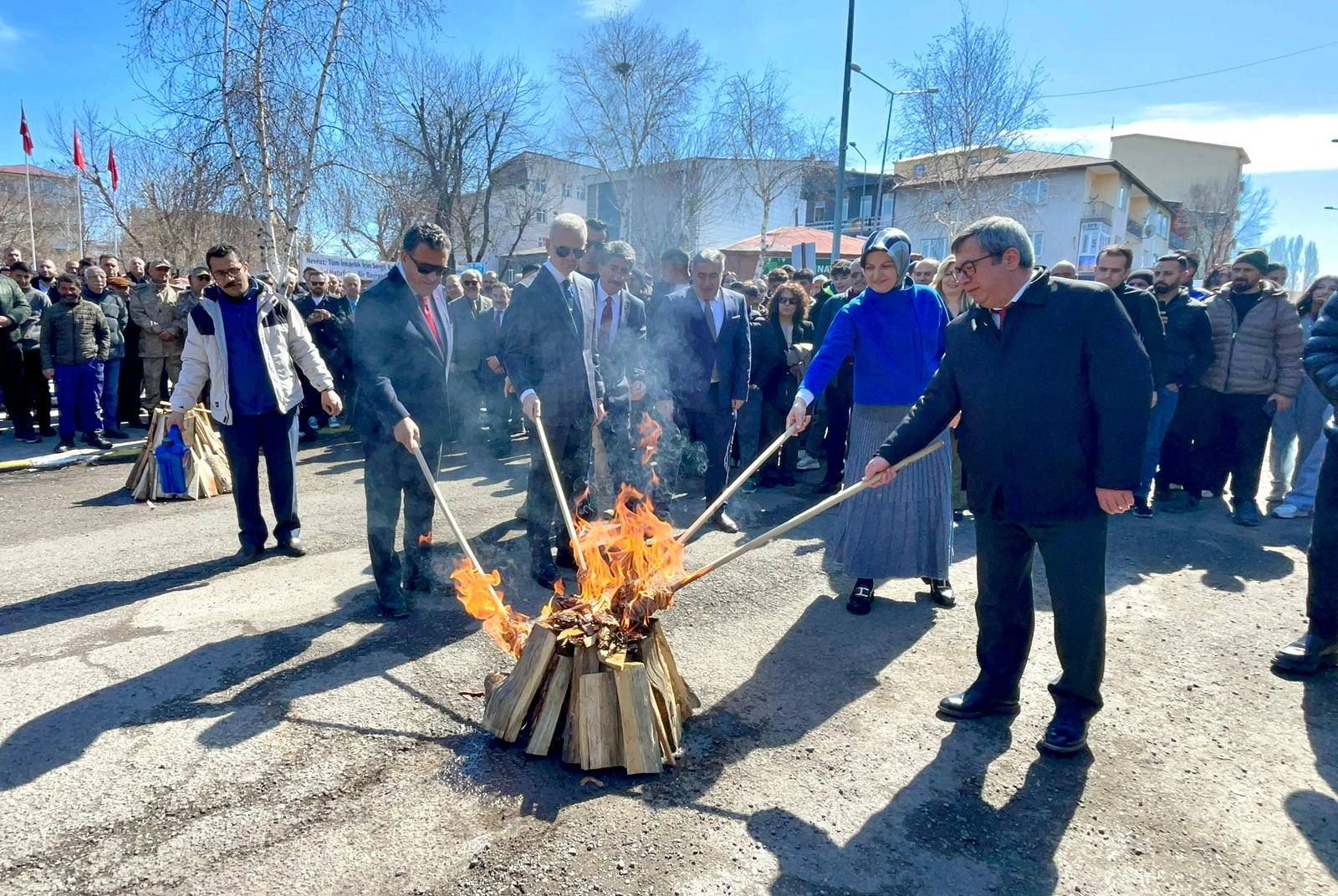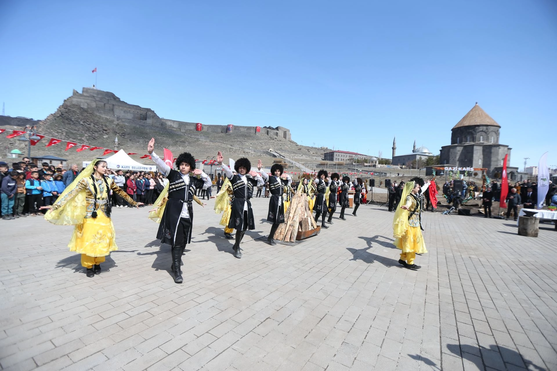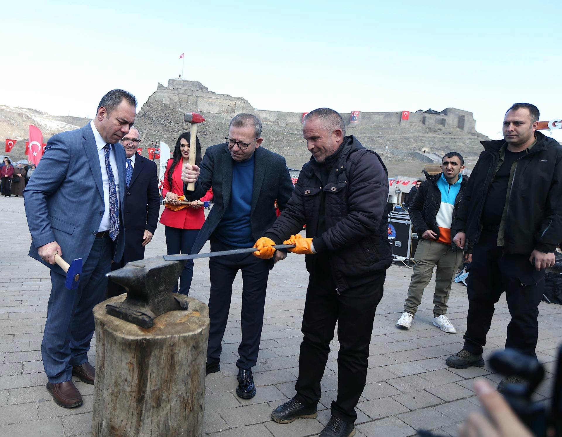 Vali Ziya Polat, Belediye Başkanı Ötüken Senger, Kafkas Üniversitesi Rektörü Prof. Dr. Hüsnü Kapu, AK Parti İl Başkanı Muammer Sancar, İl Kültür ve Turizm Müdürü Bayram Yığcı, nevruz ateşini yaktıktan sonra örste demir dövdü.