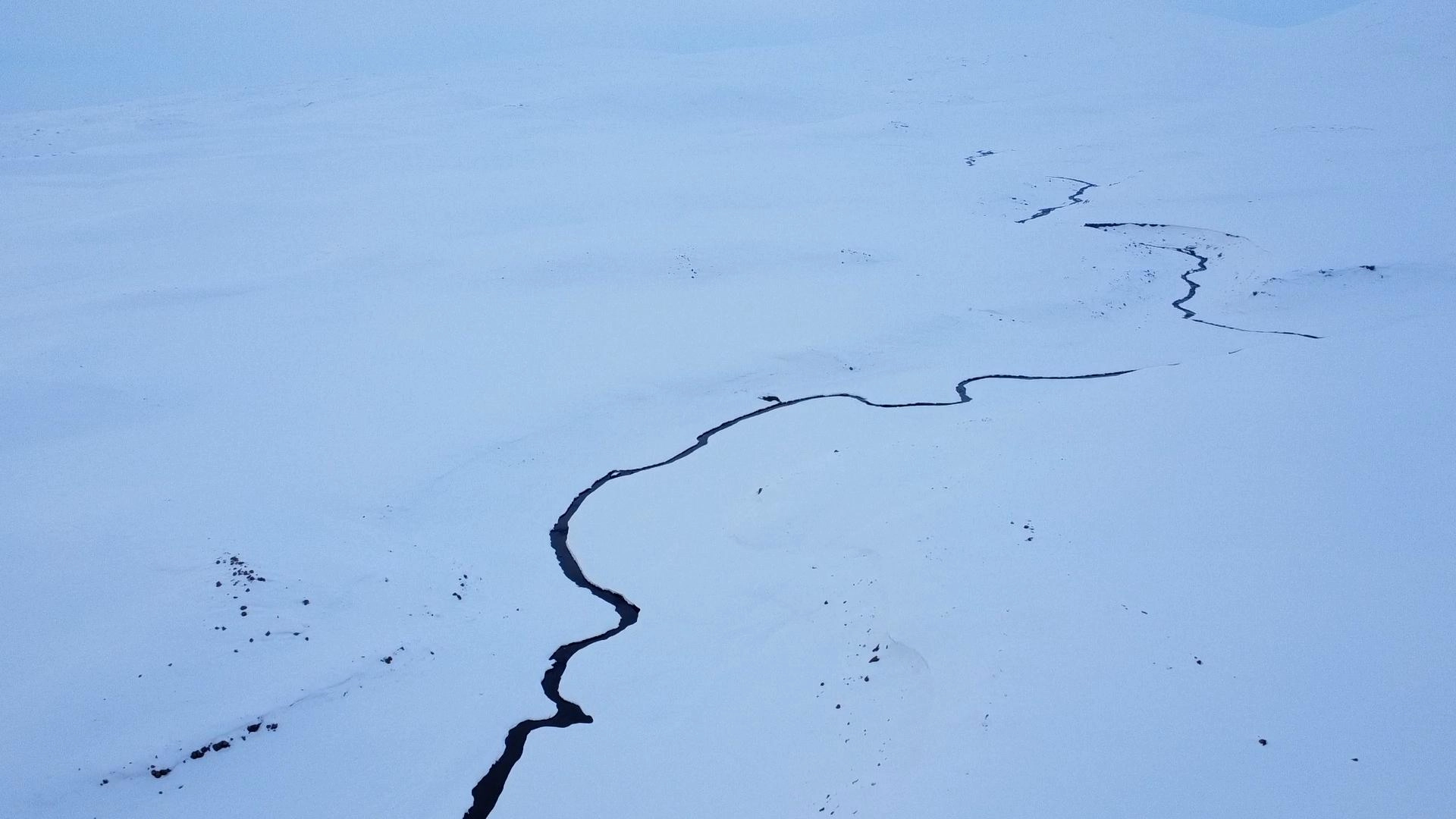 Bölgedeki karla kaplı arazi ve kıvrımlı menderesler, dron ile görüntülendi.