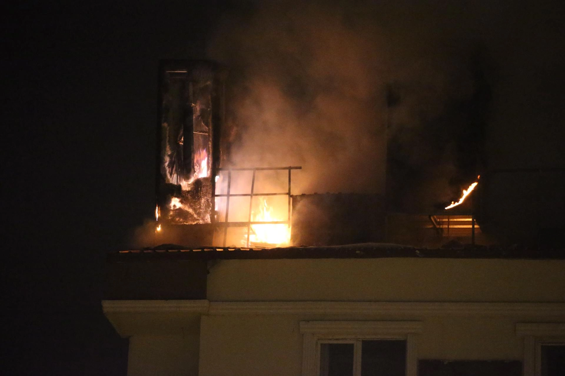 Polis ekipleri çevrede güvenlik önlemi alırken, itfaiye ekipleri yangına müdahale etti.