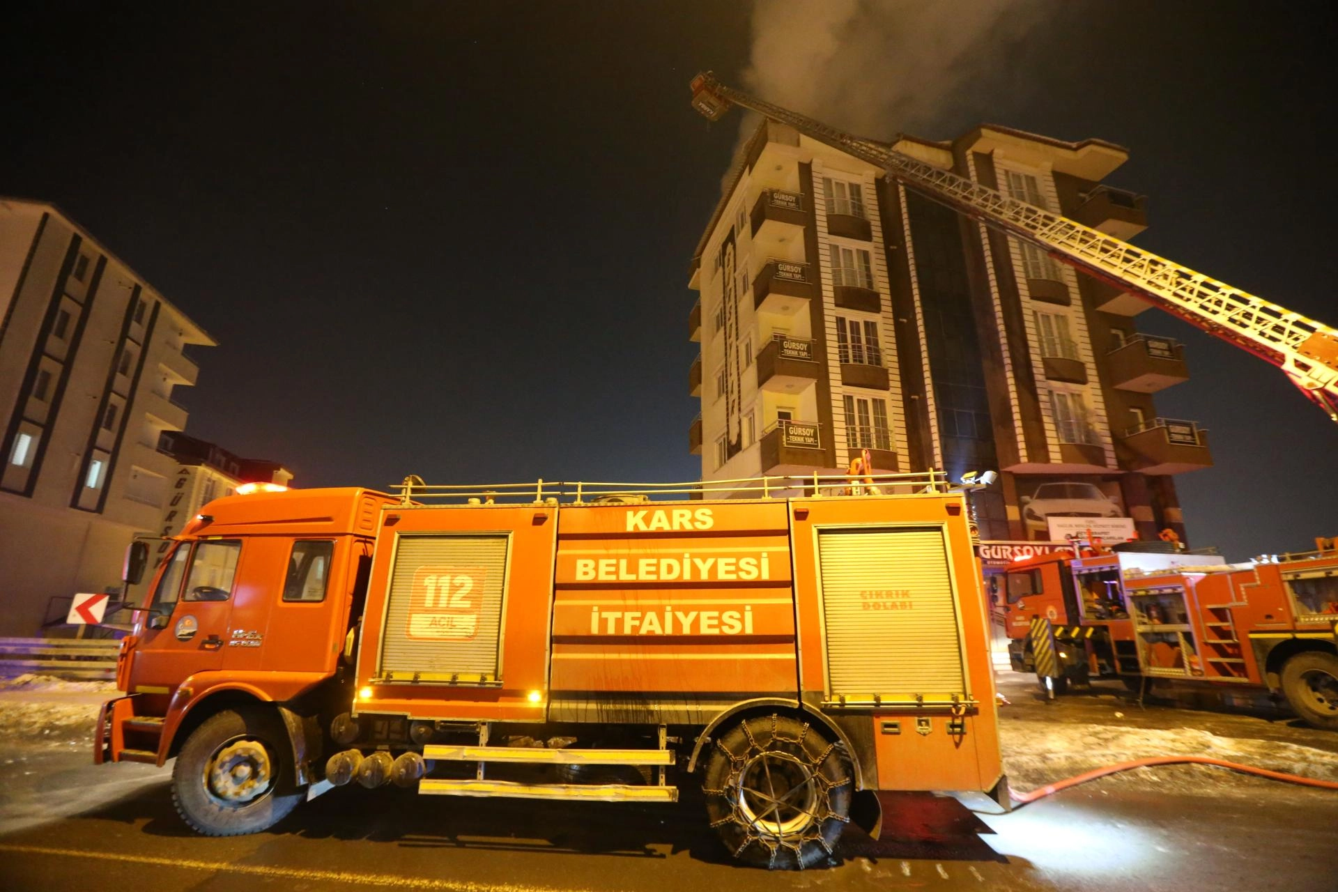 KARS (AA) - Kars'ta 6 katlı bir binanın çatı katında çıkan yangın itfaiye ekiplerince söndürüldü.
