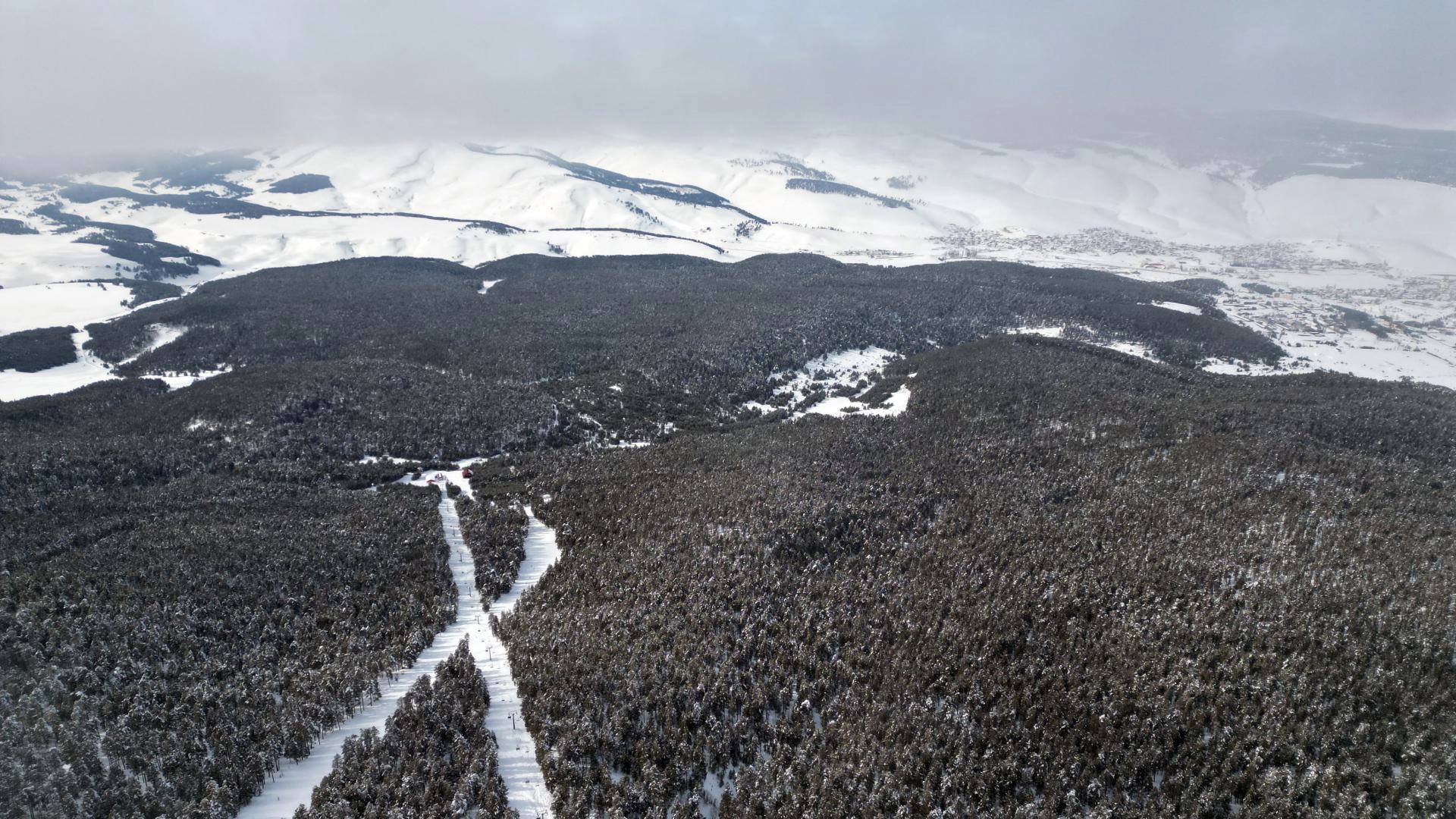 KARS (AA) - Kars'ın Sarıkamış ilçesinde karla kaplanan ormanlık alanlar dronla görüntülendi.