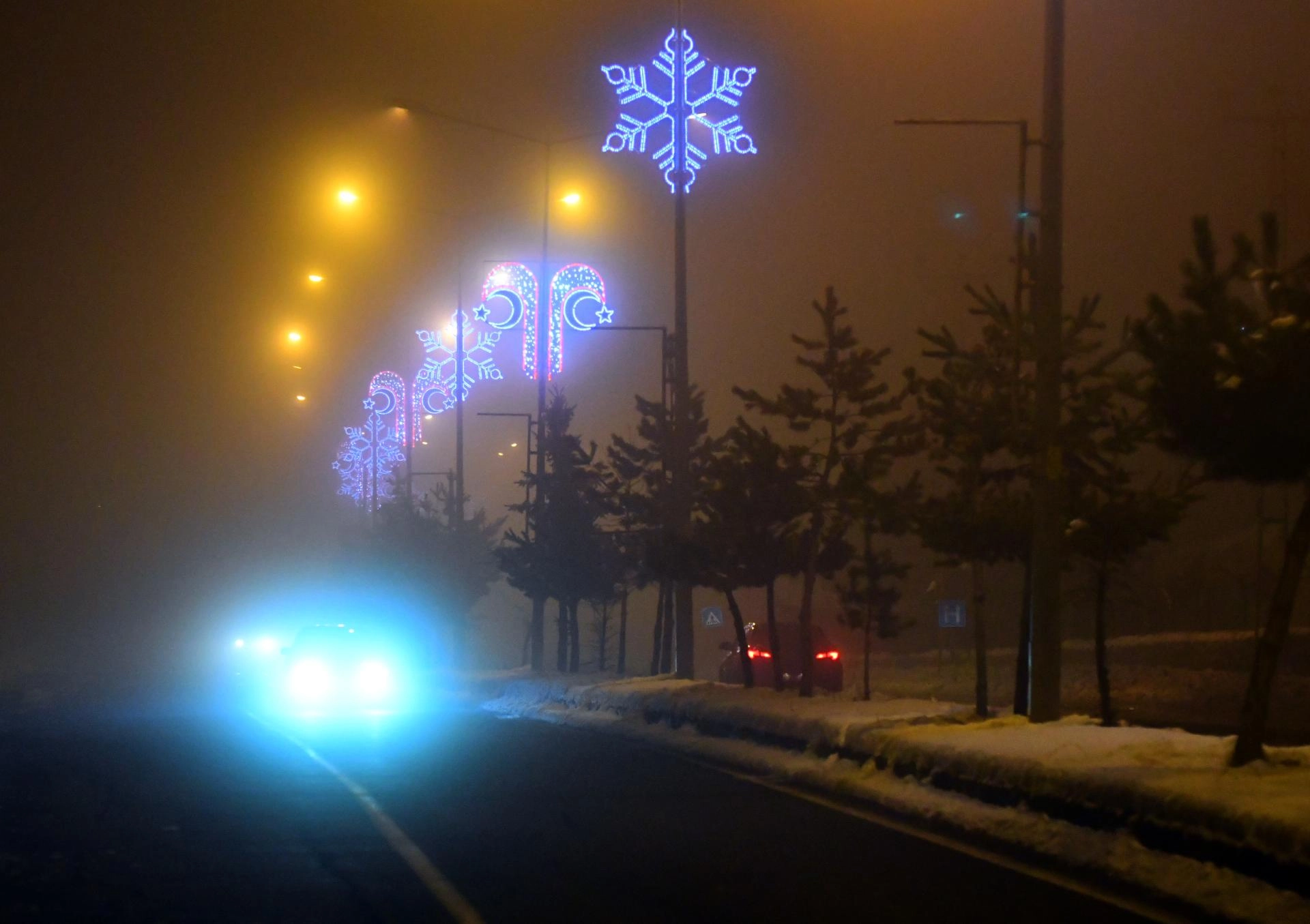 İlçede akşam saatlerinde oluşan sis nedeniyle görüş mesafesi yer yer 20 metreye kadar düştü.