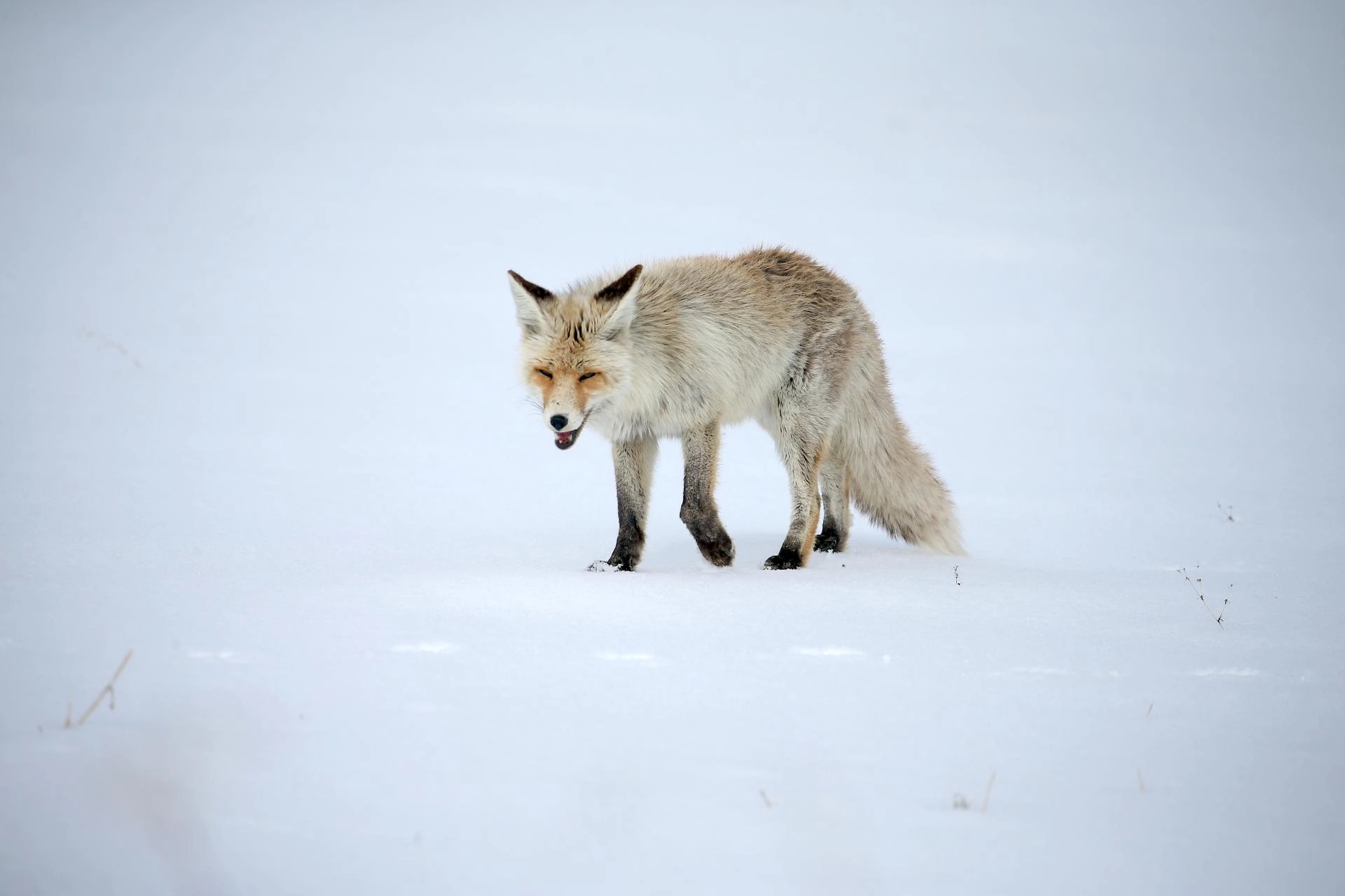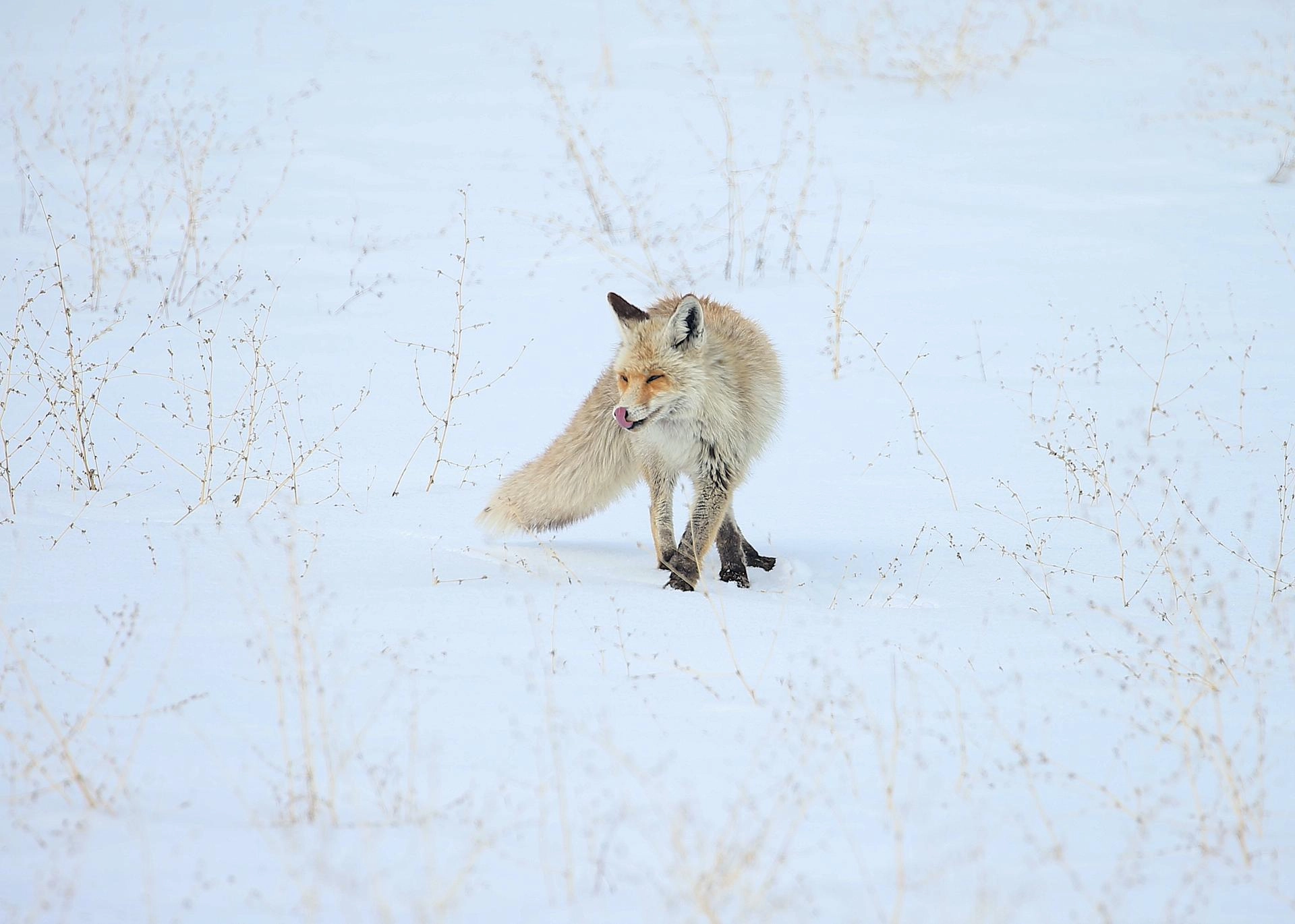 Arpaçay ilçesinde kar kalınlığının bir metreyi bulduğu arazide yiyecek bulma çabasındaki kızıl tilkiler görüntülendi.