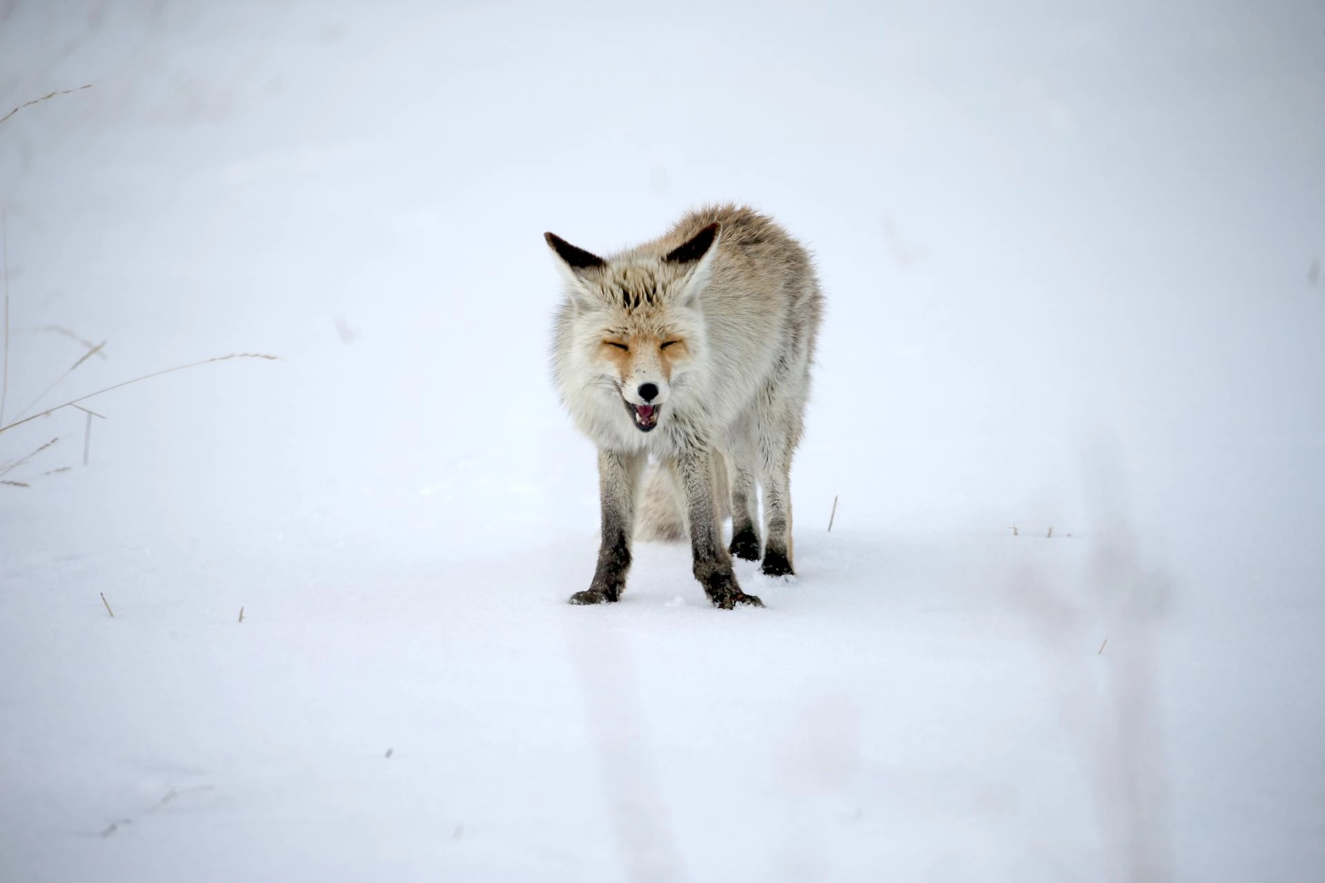 KARS (AA) - Kars'ta kar yağışı ile beyaza bürünen arazide kızıl tilkiler, yiyecek için dakikalarca ses dinleyip avını yakalamaya çalışıyor.