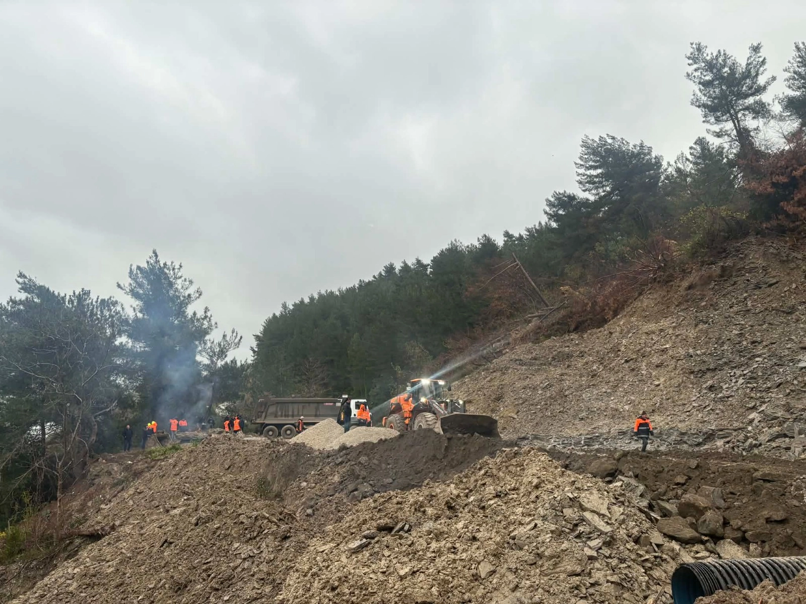 Cide-İnebolu kara yolunun 50’nci kilometresinde meydana gelen heyelanın ardından Karayolları ekipleri yoğun çalışma yürüttü.