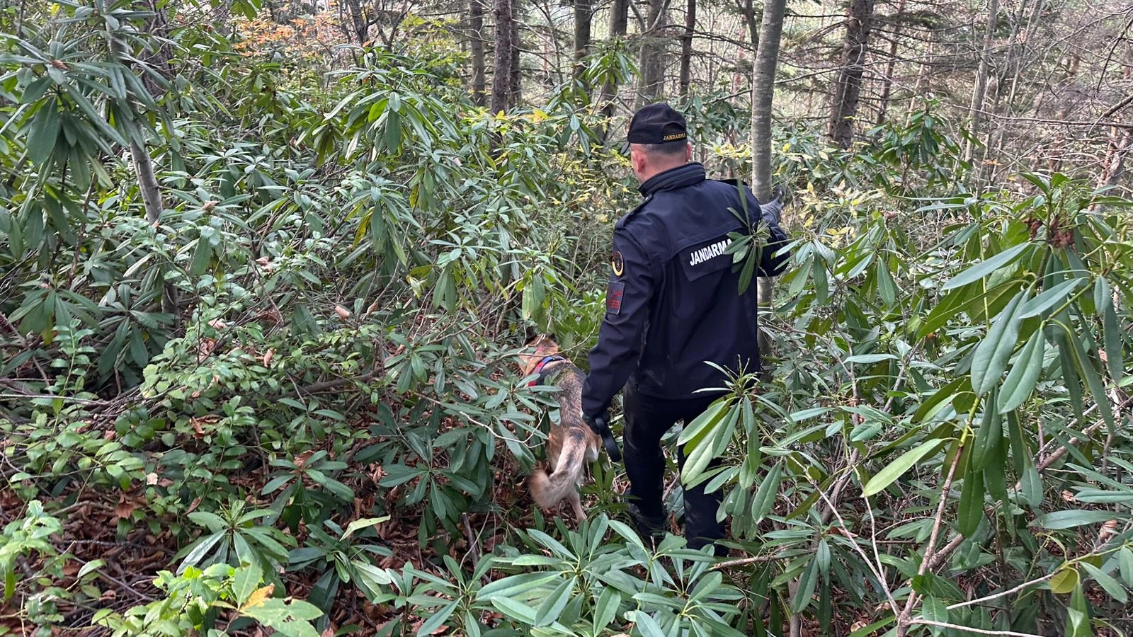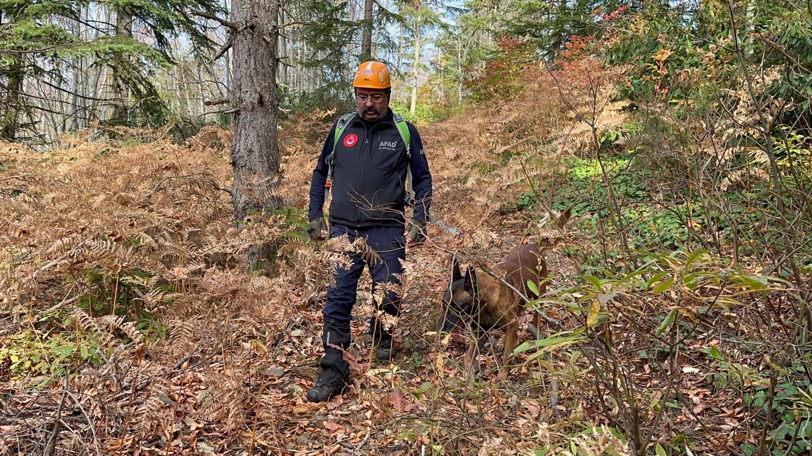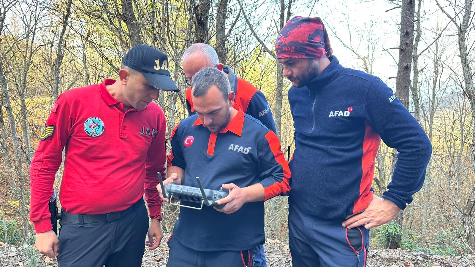 Jandarma ve AFAD ekiplerince, engebeli ve ormanlık arazide dron ile havadan arama yapılıyor. Çalışmalara iz arama köpek timi ile kadavra köpekleri de eşlik ediyor.