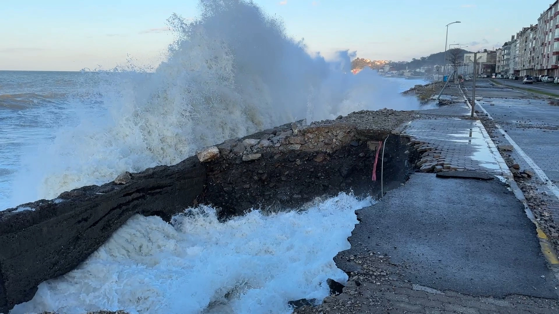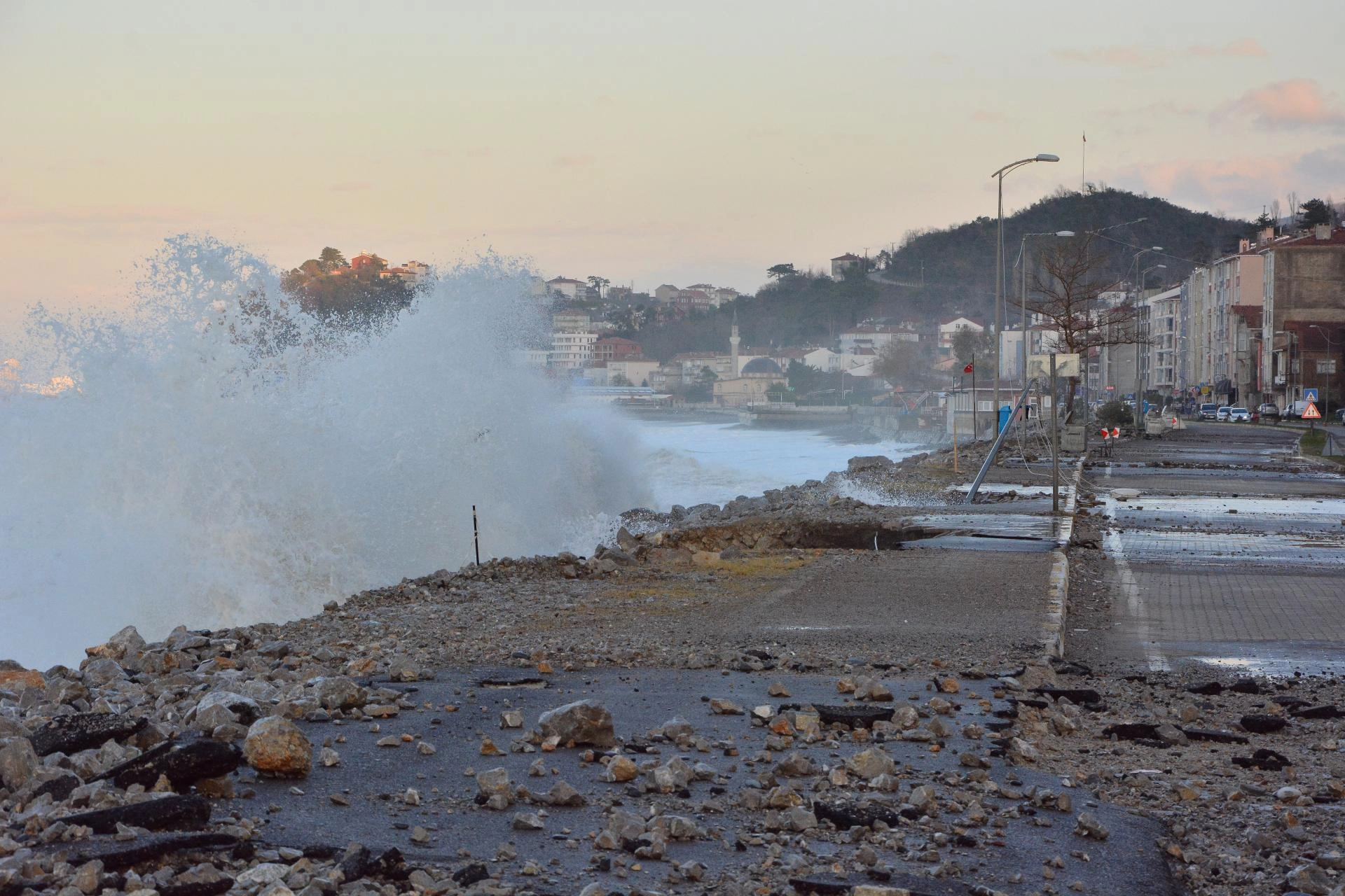 Kuzeybatıdan esen, saatteki hızı 65 kilometreye ulaşan fırtına nedeniyle Karadeniz'de oluşan 5 metrelik dalgalar, İsmetpaşa Caddesi'ne taştı.
