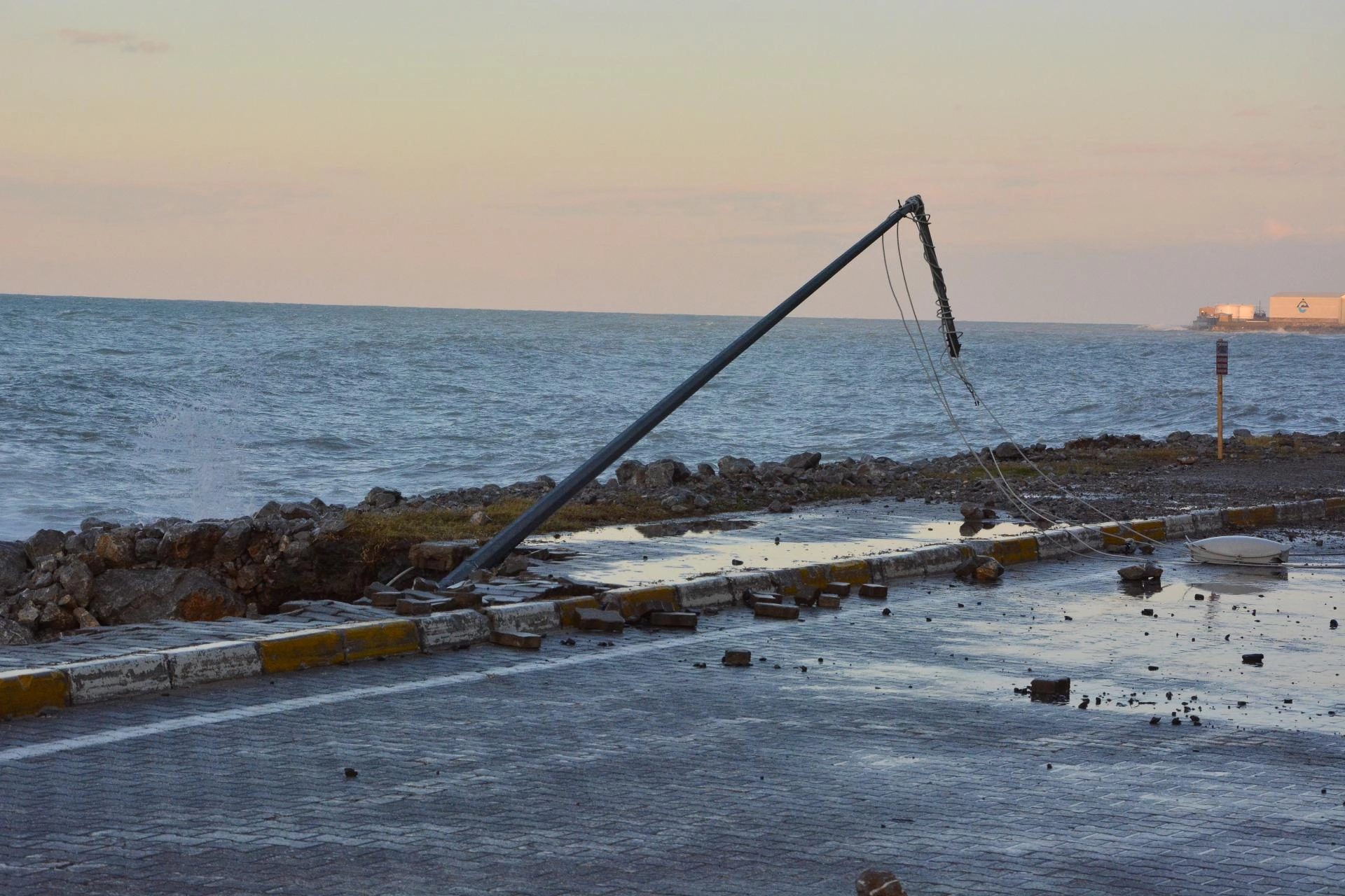 Dalgalar ve taşıdığı taş ile molozlar nedeniyle caddede bulunan bazı elektrik direkleri yıkıldı, cadde kenarındaki kaldırımlarda ve istinat duvarlarında çökme meydana geldi.