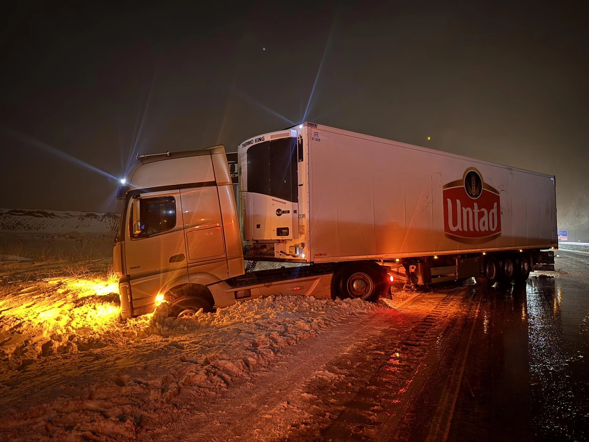 Tırların makasladığı, otomobil ve hafif ticari araçların karıştığı kazalar nedeniyle yolda trafik kontrollü sağlanıyor.