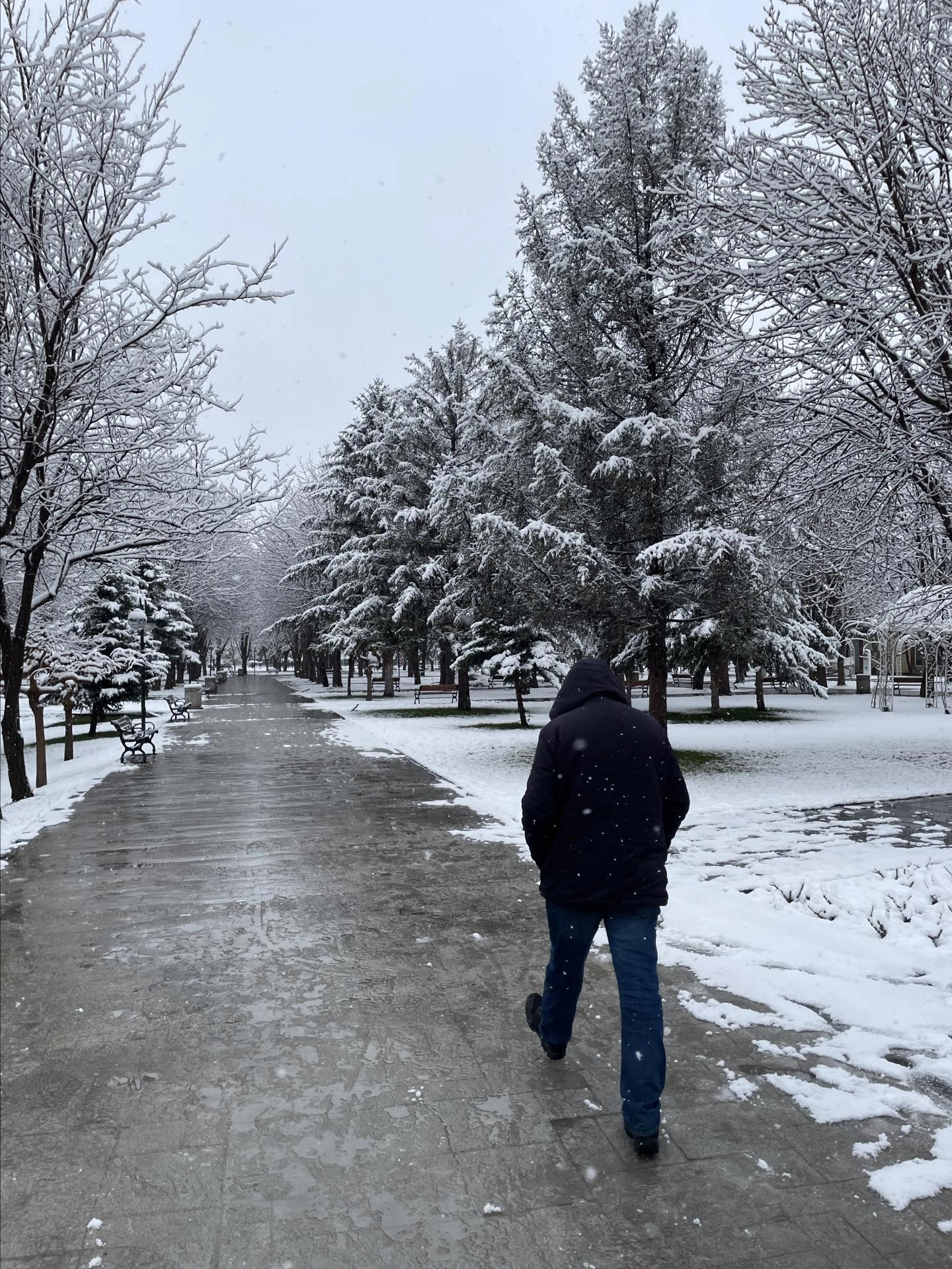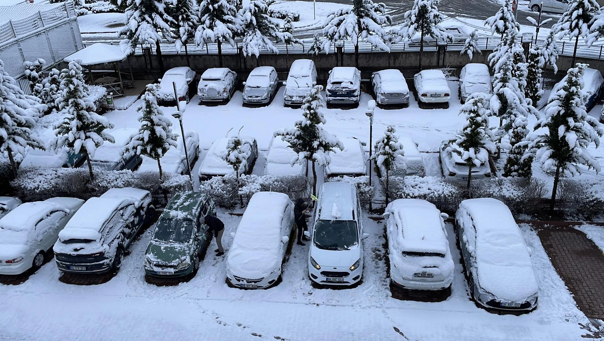 Kentte dün akşam saatlerinde başlayan ve etkisini gece boyunca sürdüren yağış nedeniyle cadde ve sokaklar, parklar, evlerin çatıları ile araçlar beyaza büründü.