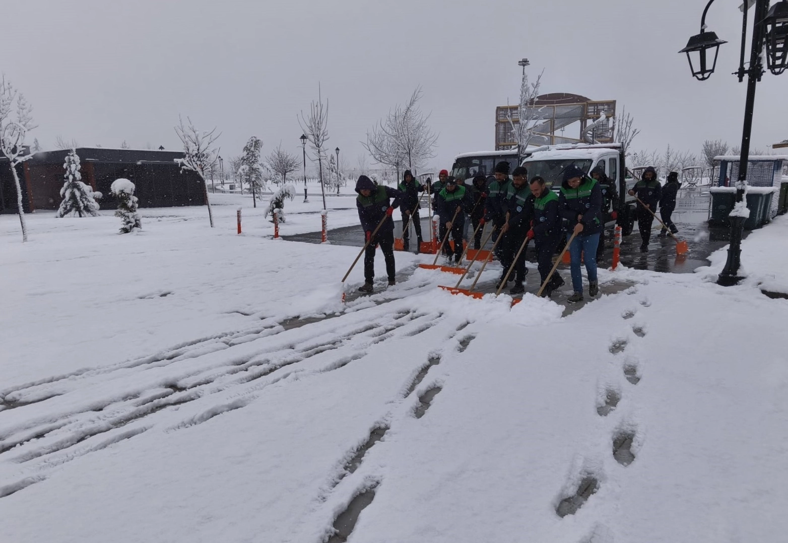 Karayolları ve Büyükşehir Belediyesi ekipleri, yolları açık tutabilmek için kar küreme ve tuzlama çalışması yapıyor.