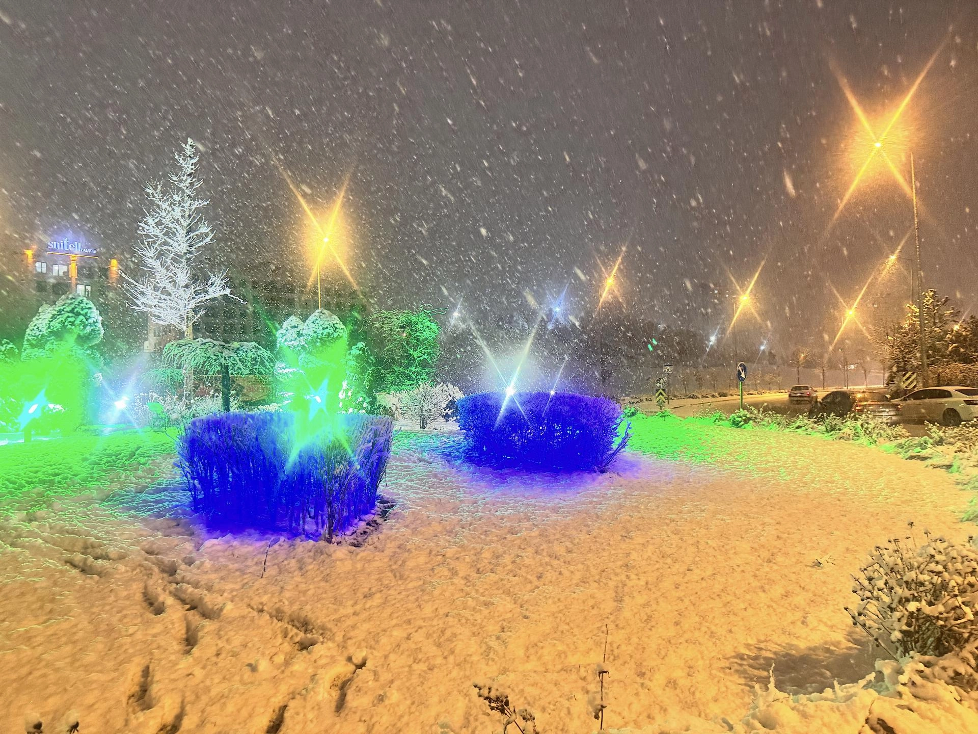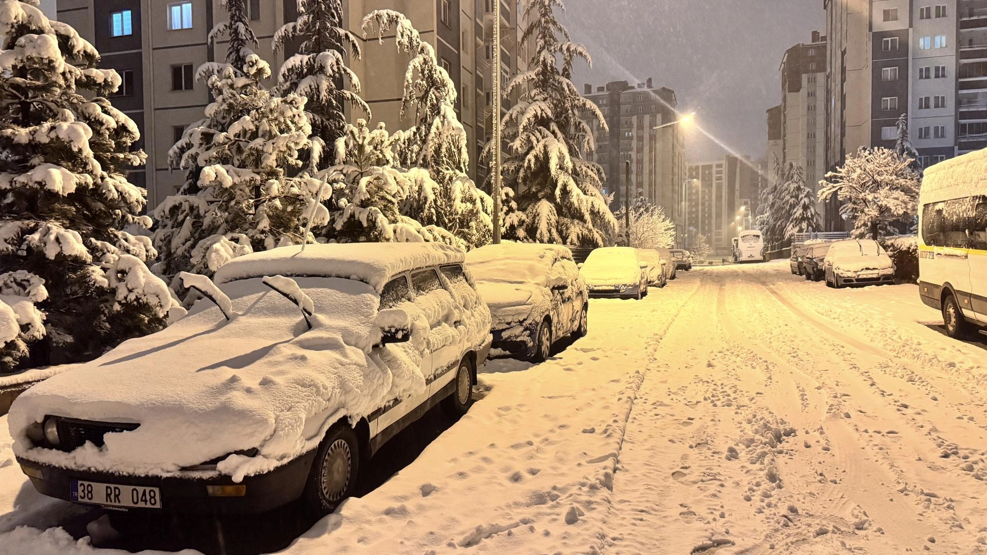 Yağış nedeniyle çatılar, parklar ve araçların üzerinde kar birikintileri oluştu.