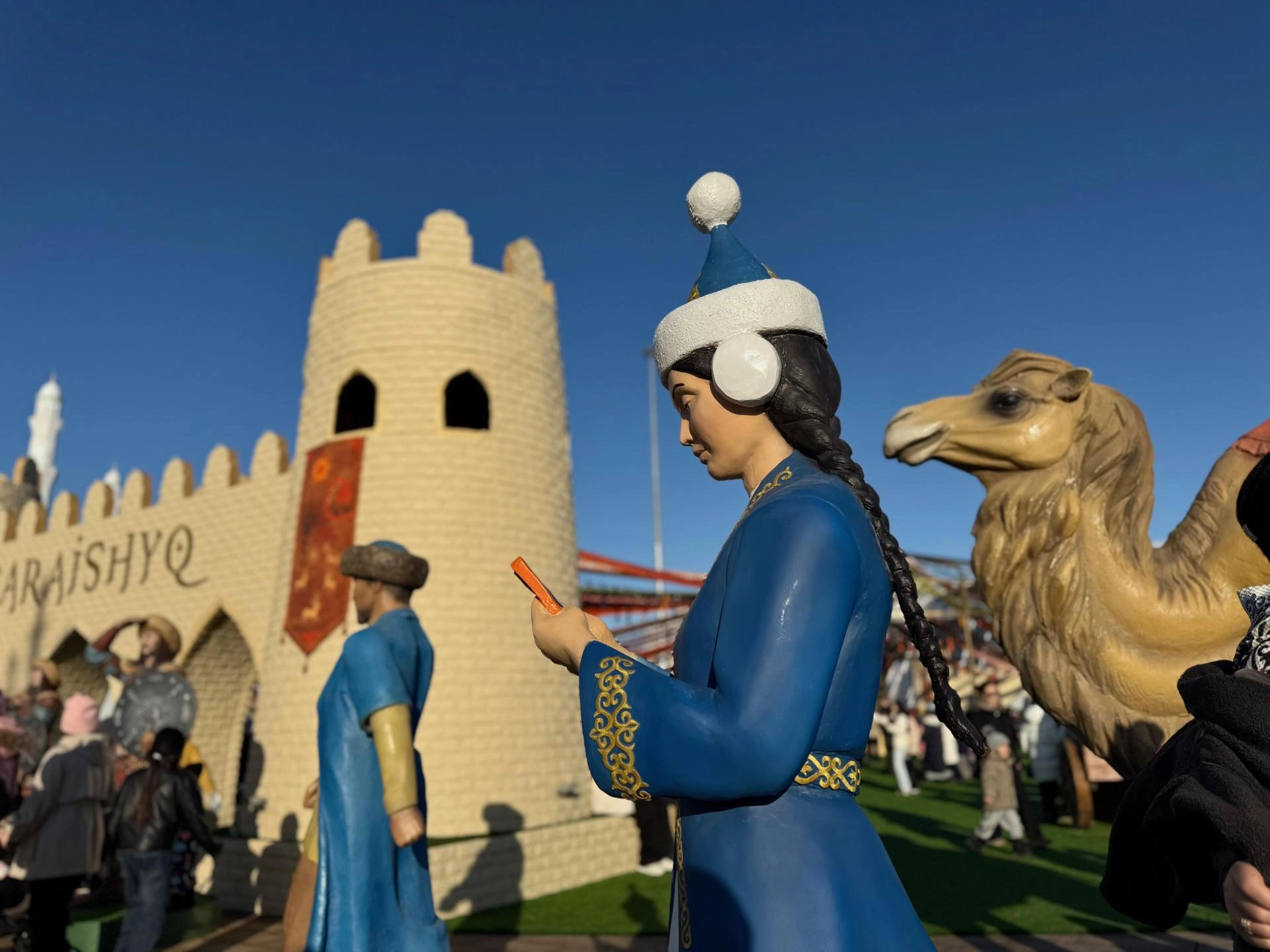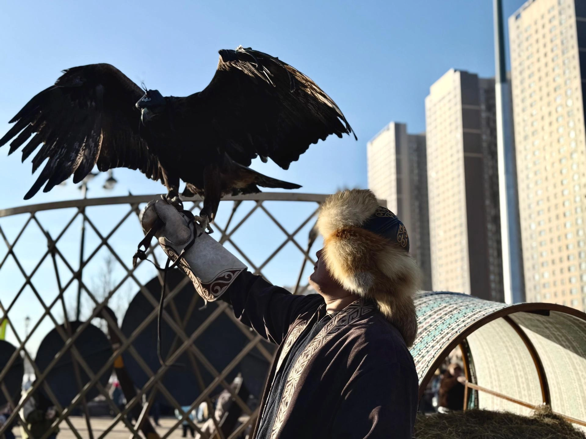 Geleneksel Kazak köyü konseptiyle düzenlenen alanlarda ziyaretçiler çadır evleri gezebiliyor, kartal ve çoban köpekleriyle fotoğraf çektirebiliyor.