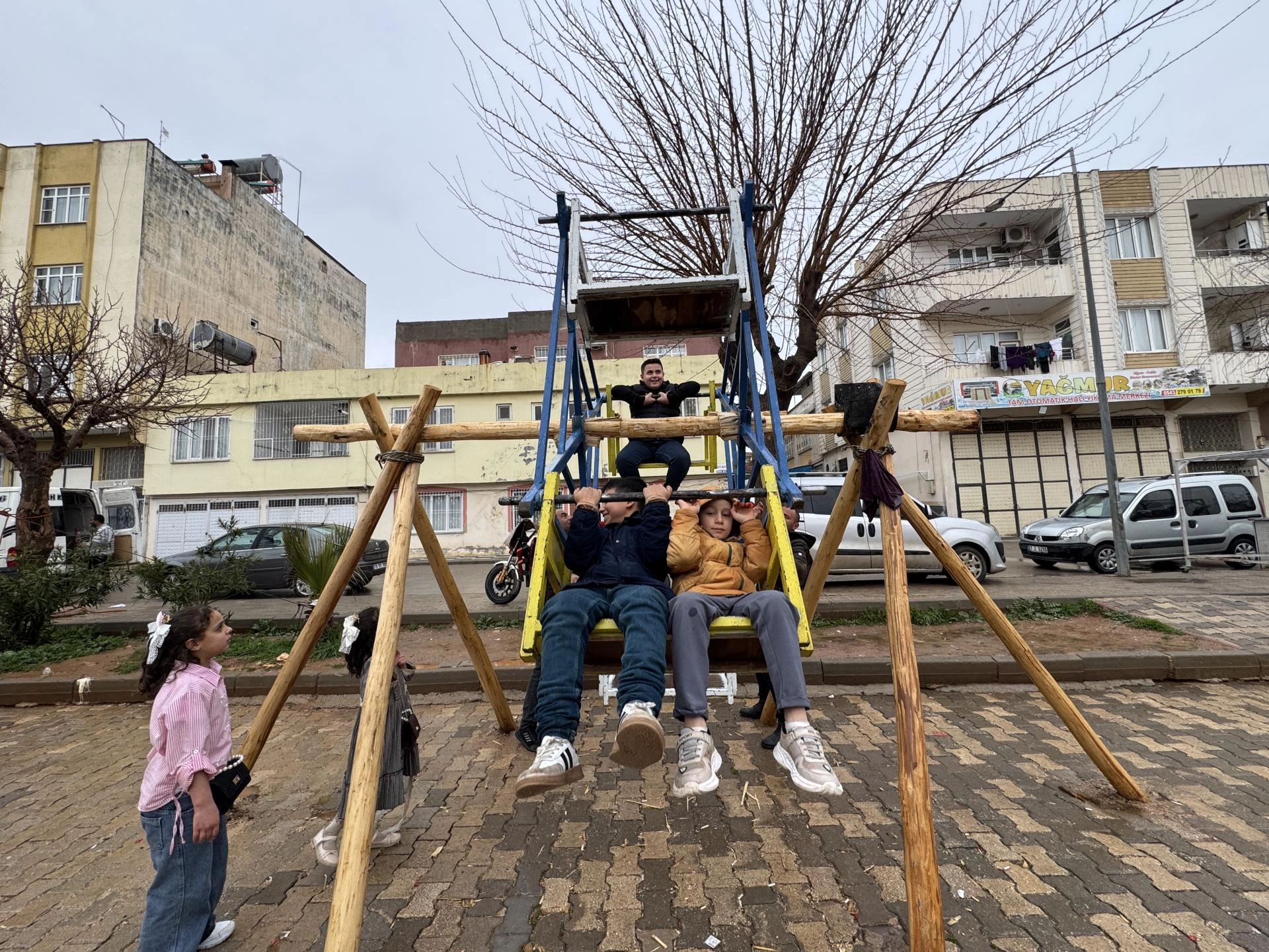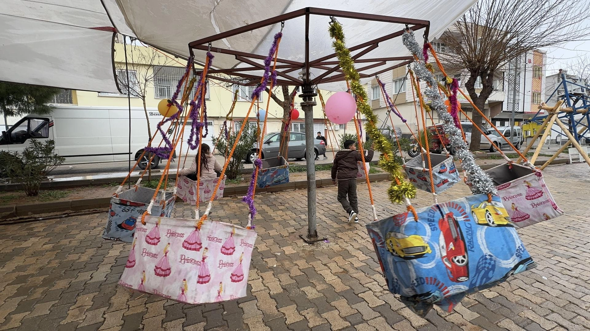 Müslümanbey Mahallesi'ndeki boş alan, bayramlarda çocukların eğlenebileceği mekan haline dönüştürülüyor.