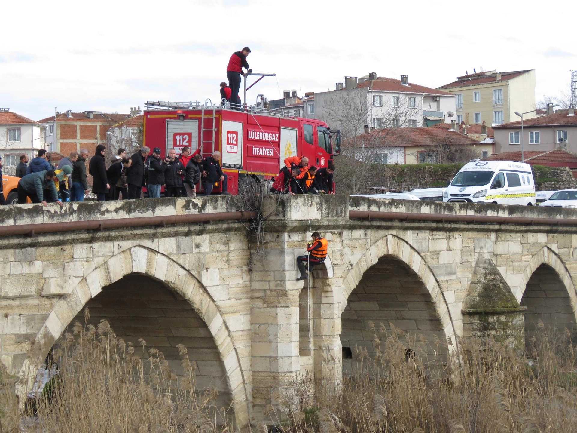 Lüleburgaz Deresi taş köprü ayaklarının yanında, dere yatağında bir kişinin hareketsiz yattığını gören vatandaşlar durumu 112 Acil Çağrı Merkezine bildirdi.