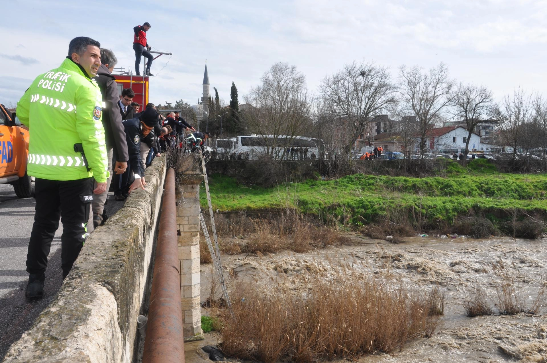 Polis ekiplerince çevrede geniş güvenlik önlemleri alınarak, köprü araç ve yaya trafiğine kapatıldı.