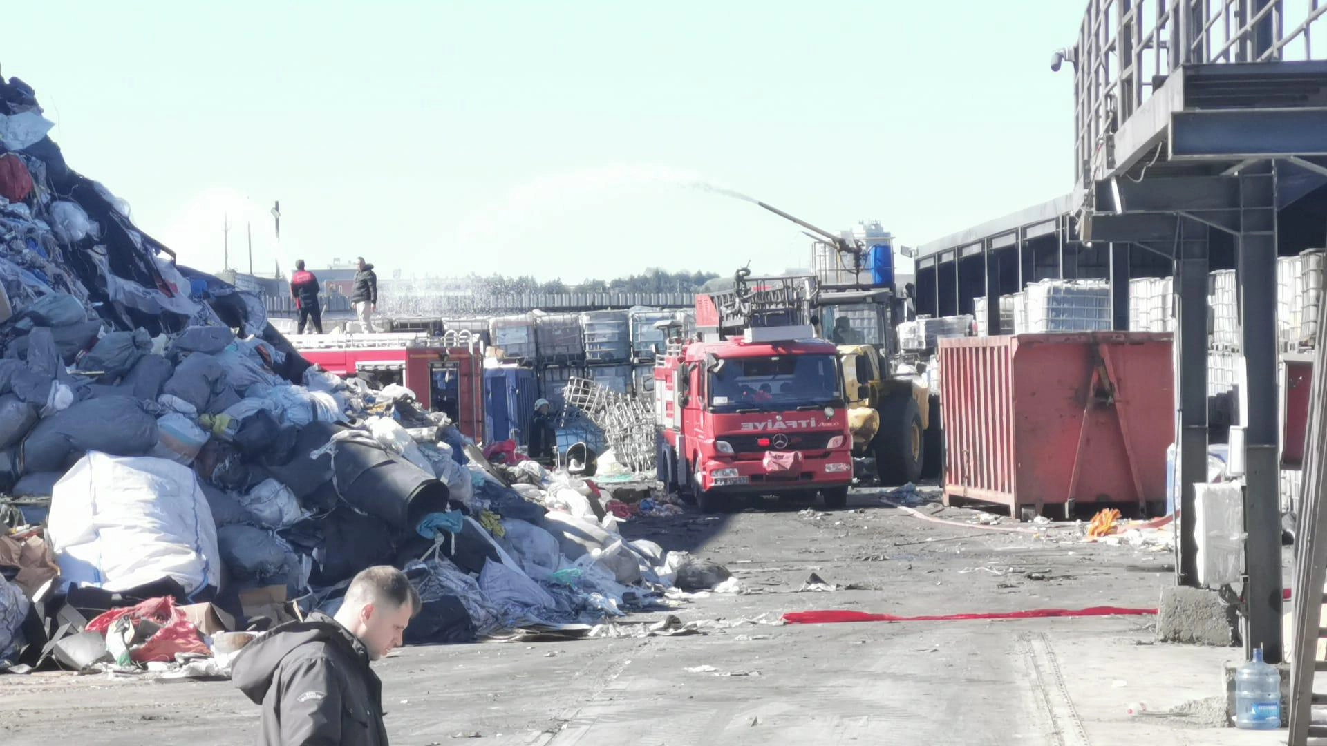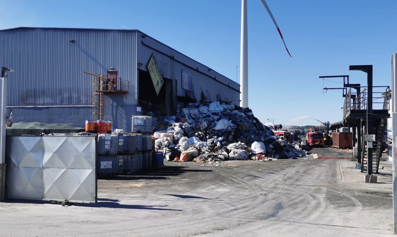 Yenibedir köyü yakınlarındaki geri dönüşüm tesisinde henüz bilinmeyen nedenle yangın çıktı.