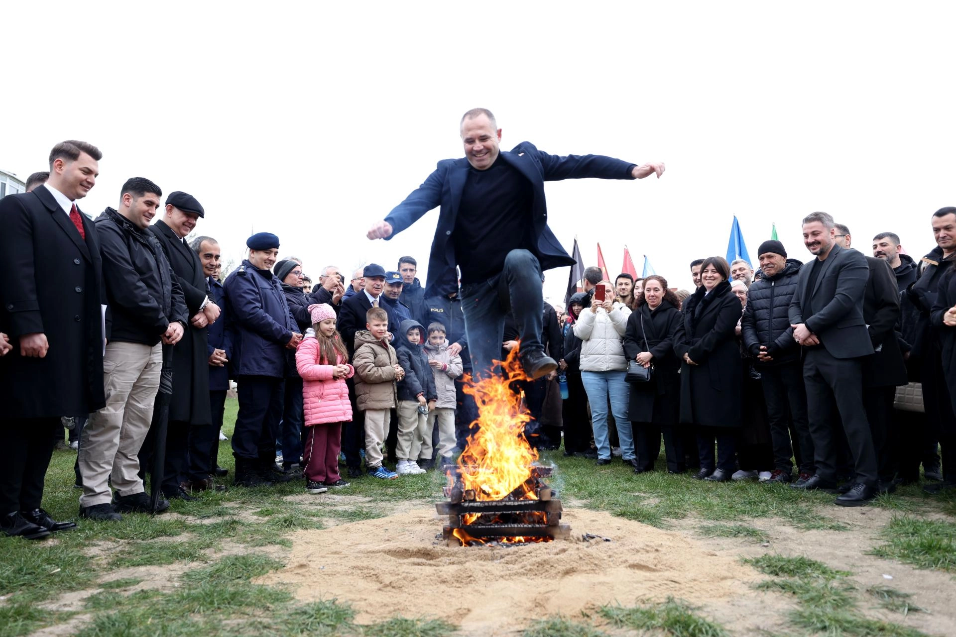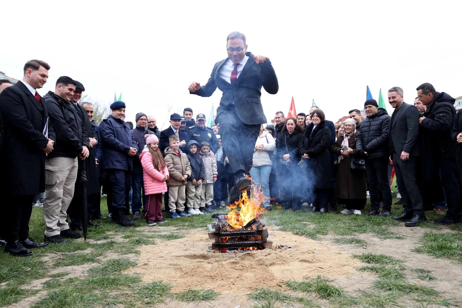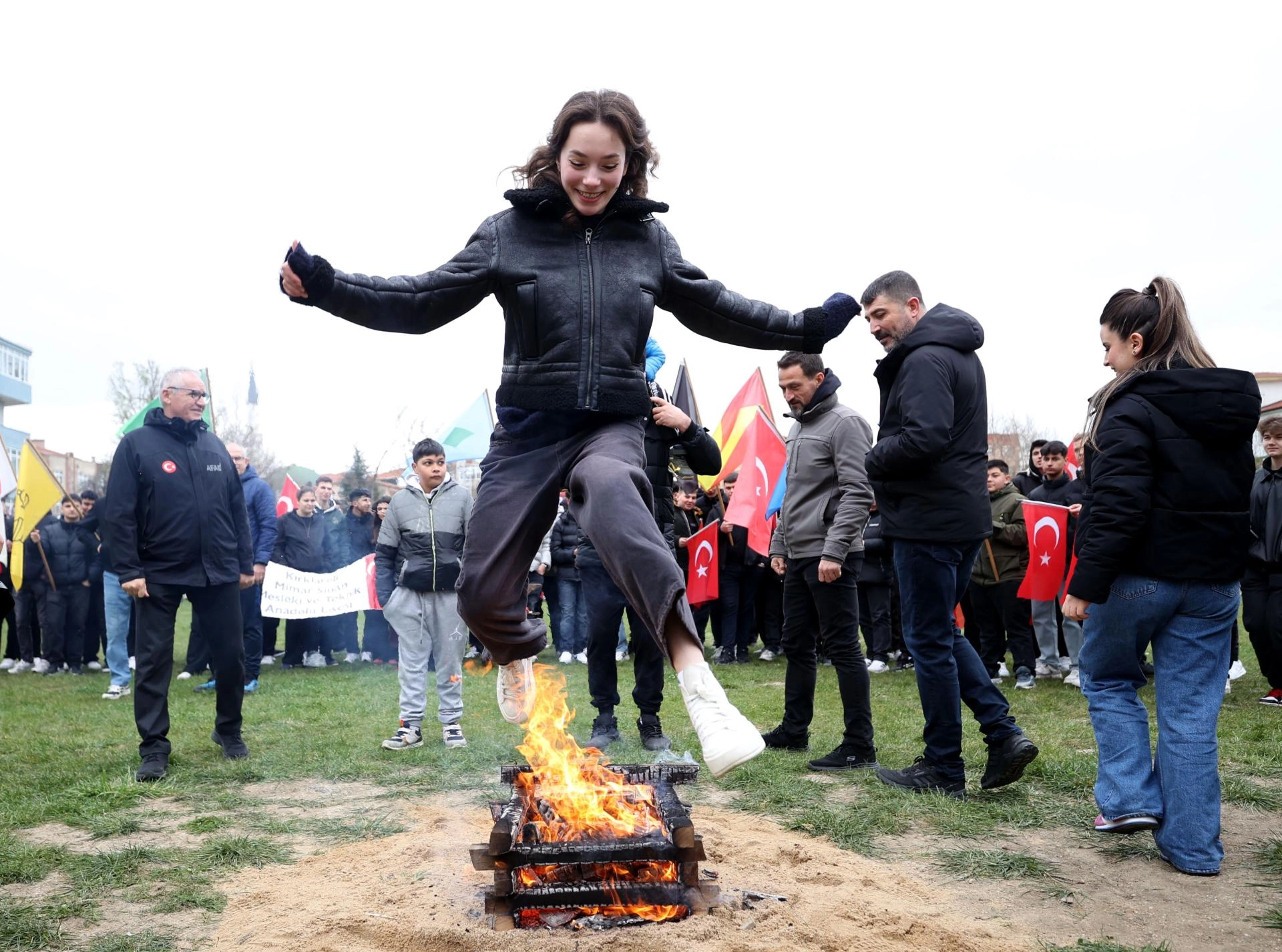 Vali Turan, protokol üyeleri ve vatandaşlar nevruz ateşinin üzerinden atladı.