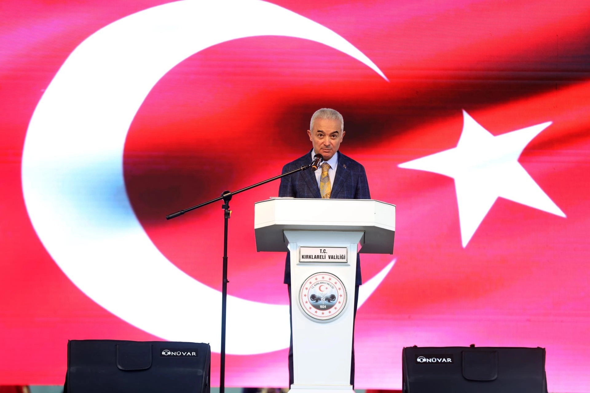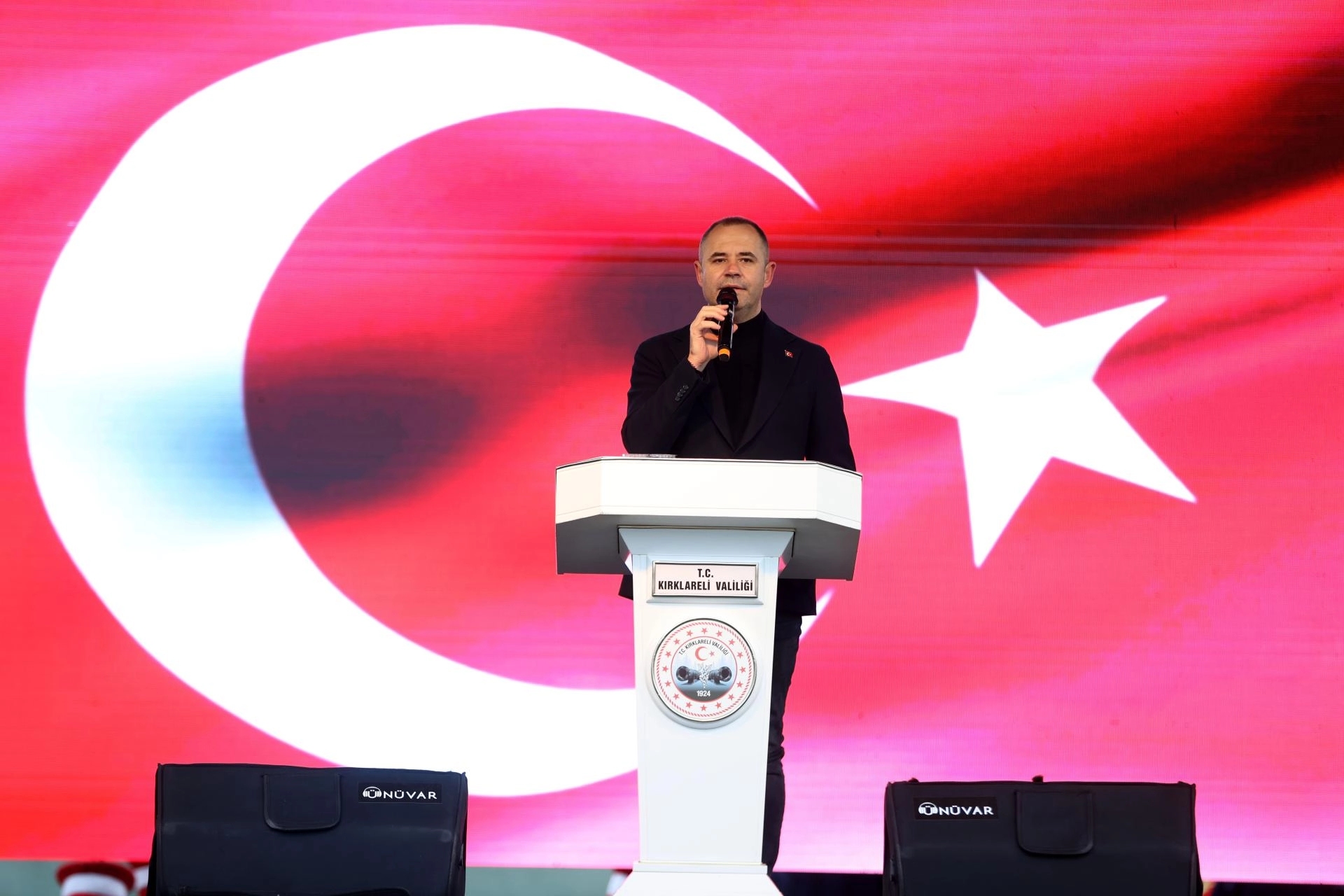 Millet Bahçesi'ndeki programda konuşan Kırklareli Valisi Uğur Turan, Türk-Katar Ortak Kuvvet Komutanlığı idaresindeki eğitimler sırasında Katar kara sularında teknik arıza nedeniyle helikopterin düşmesi sonucu şehit olan askeri personel ile ASELSAN teknisyenlerine Allah'tan rahmet, yakınlarına başsağlığı diledi.