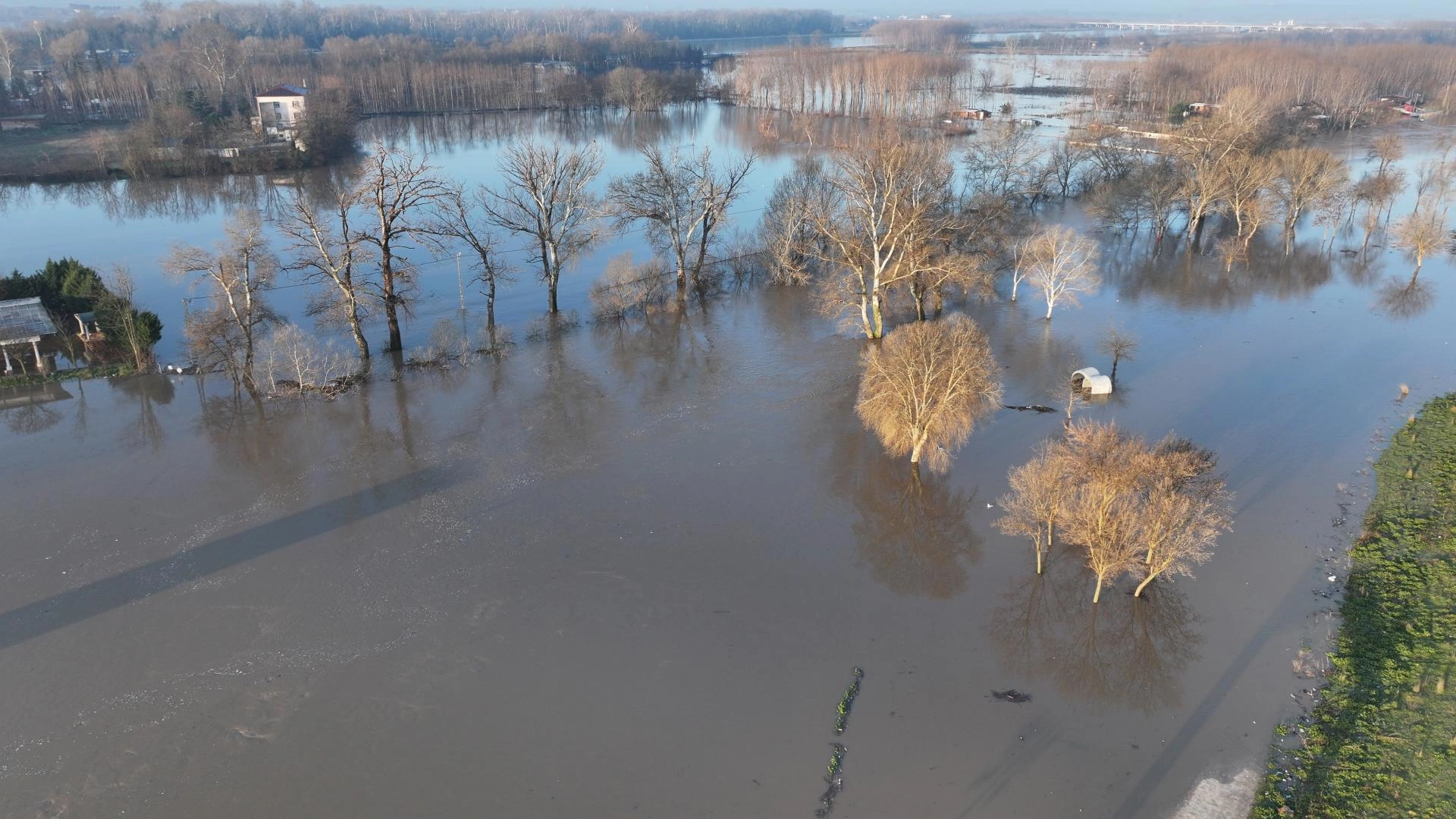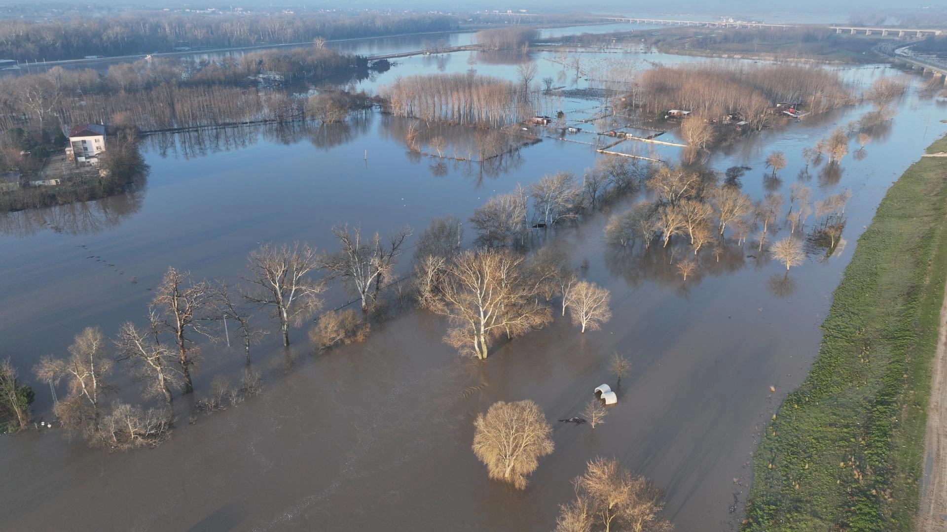 Yerleşim alanlarına suyun yayılmasını seddeler önlerken, güneydeki nehre yakın köylerde Meriç yatağına sınırda akıyor.