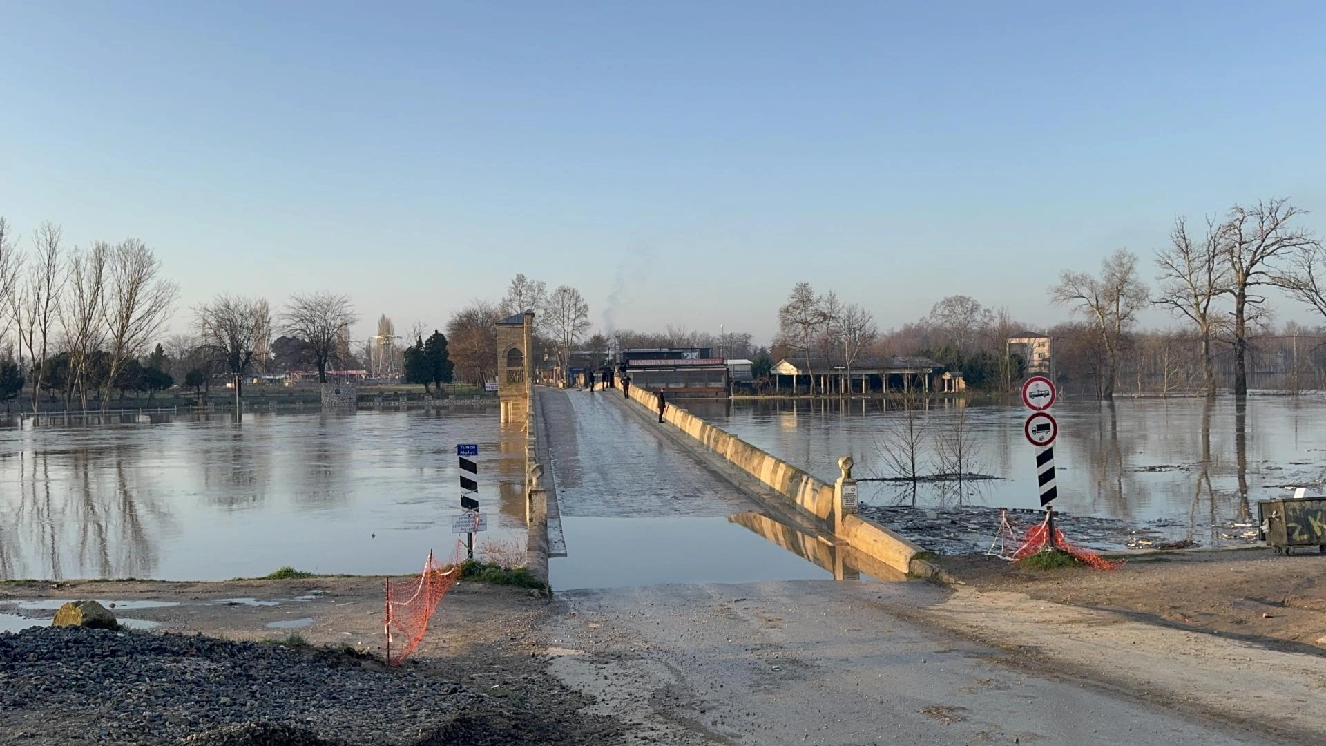 Gözleri neredeyse kapanma düzeyine gelen nehrin yükselmesi nedeniyle tarihi Tunca Köprüsü trafiğe kapatıldı. Bölgedeki turistik tesislerle araziler sular altında kaldı.