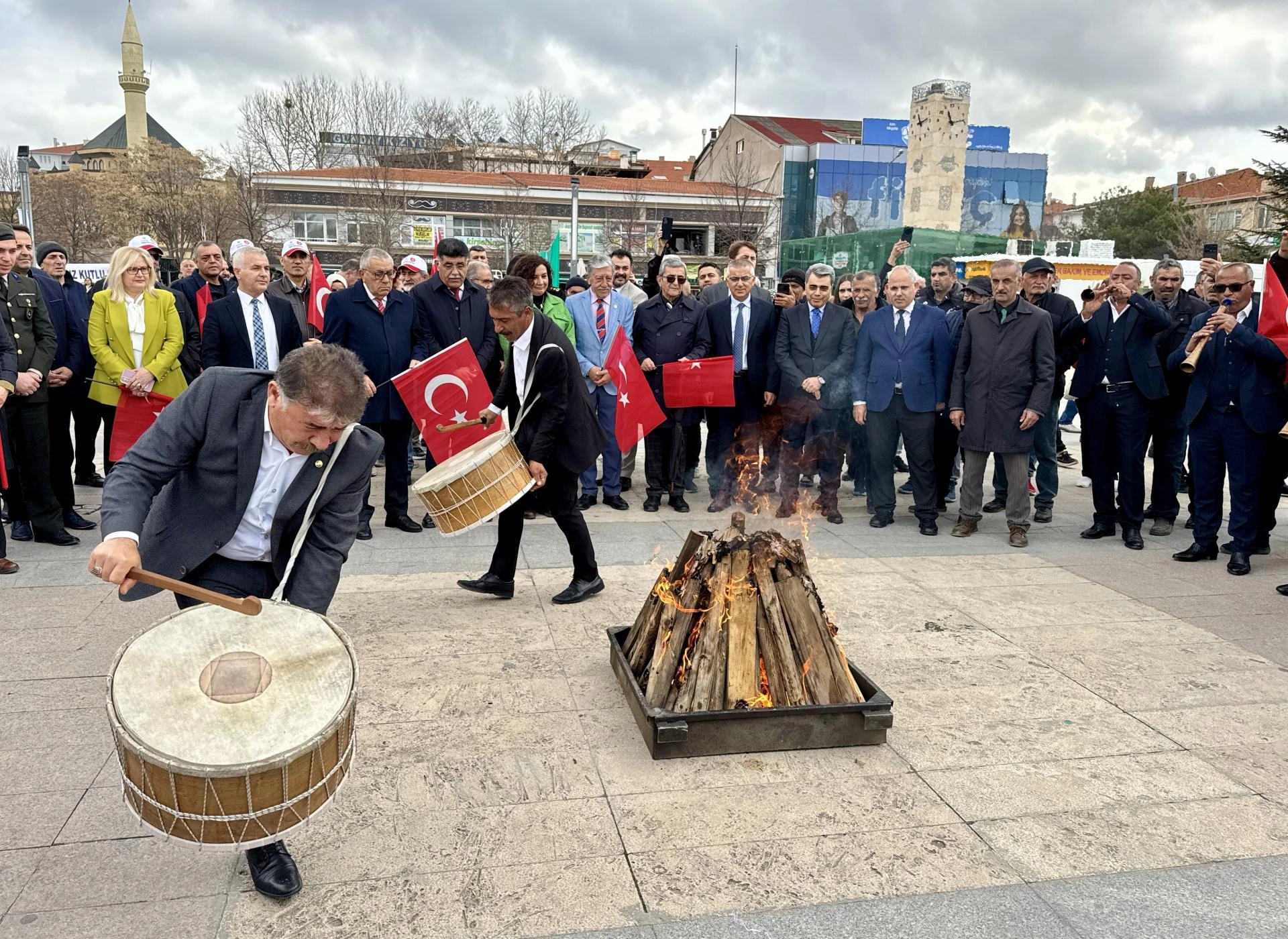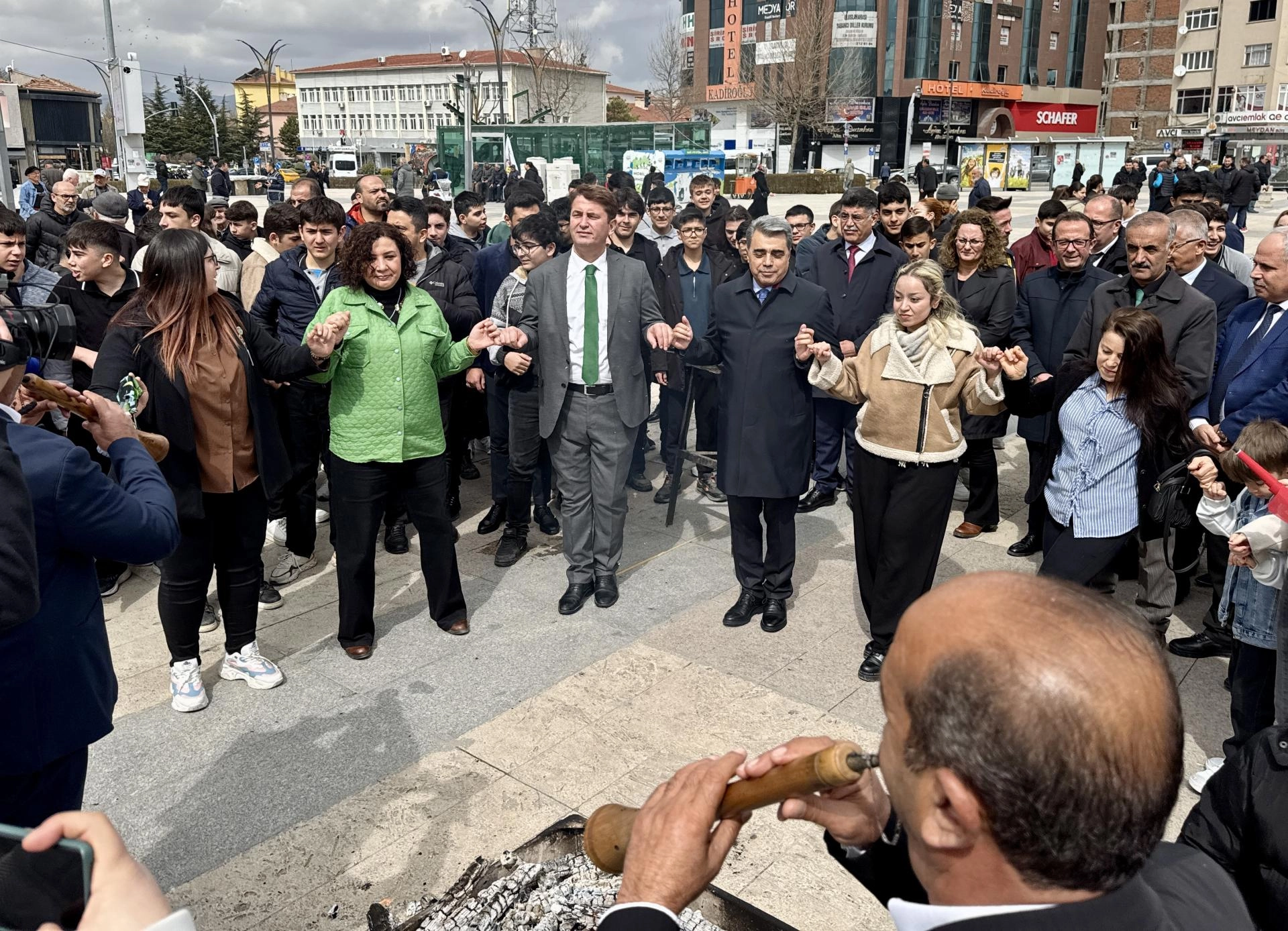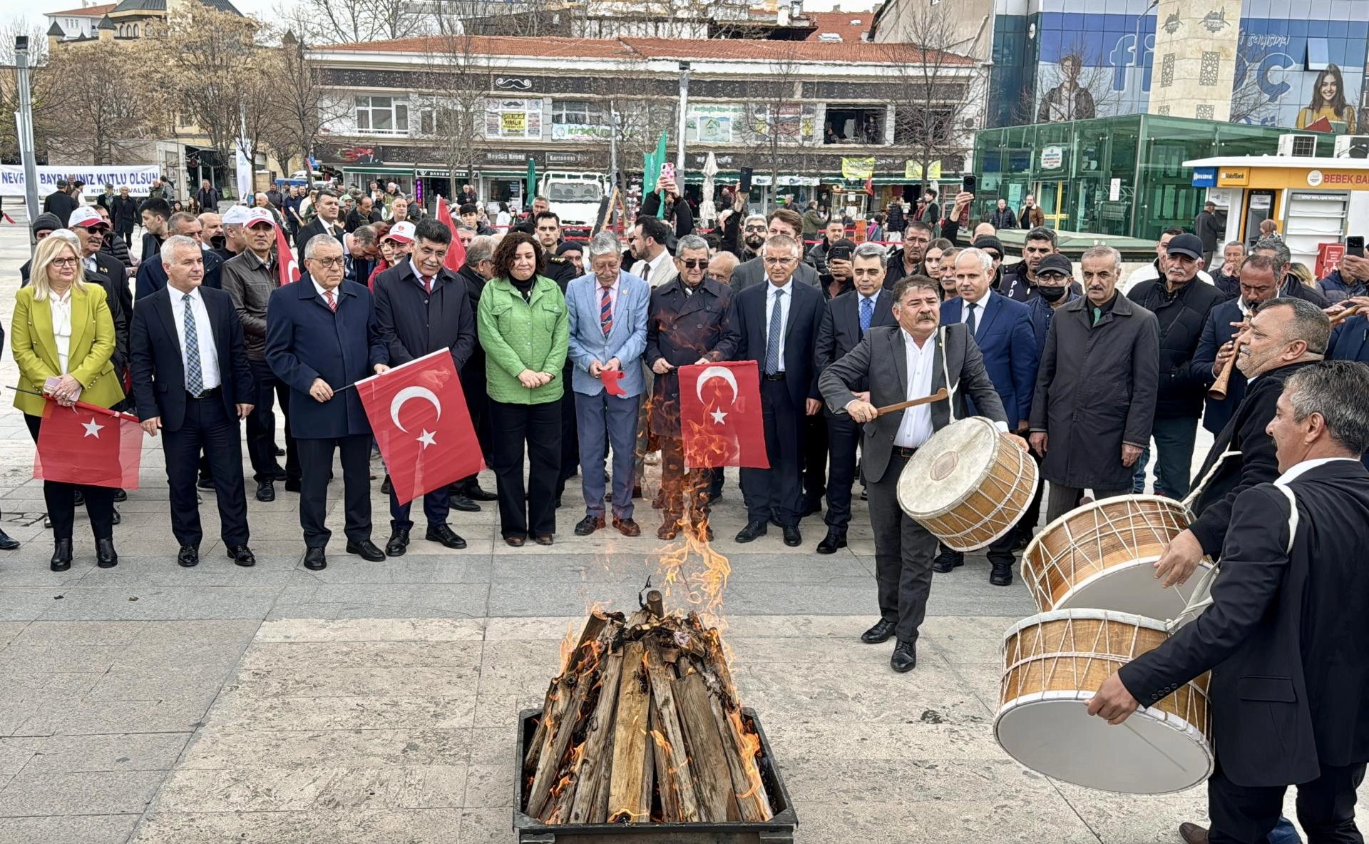 İl Kültür ve Turizm Müdürlüğünce Cacabey Meydanı'nda düzenlenen etkinlikte, il protokolü nevruz ateşini yakarak, örste demir dövdü.