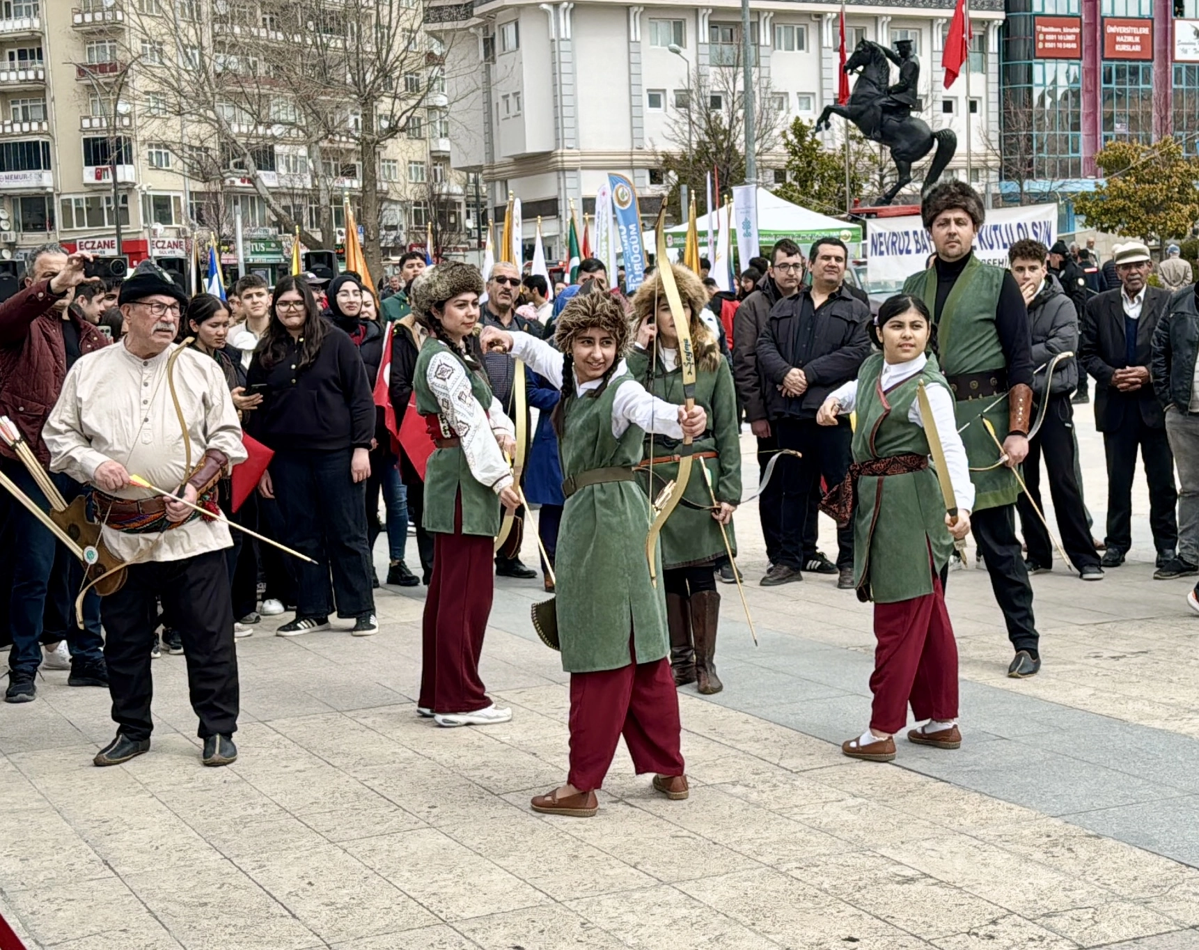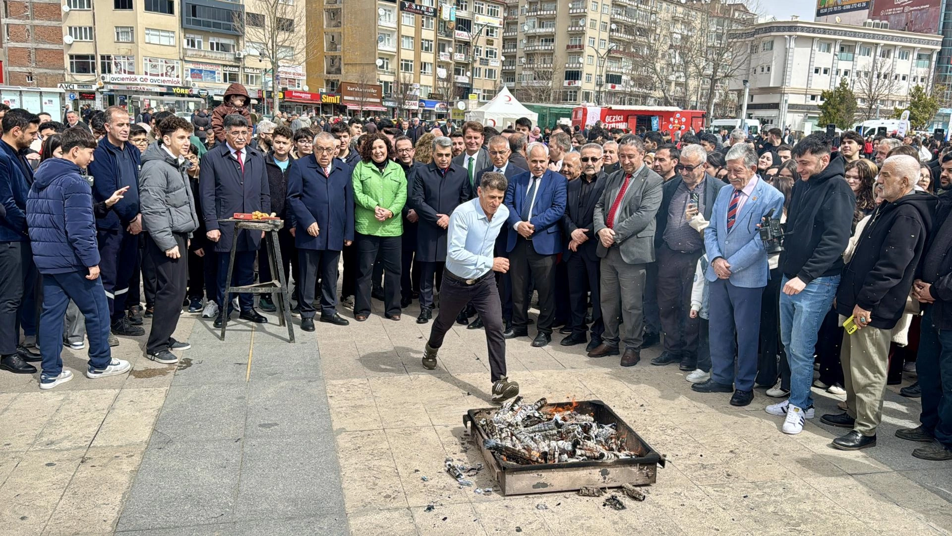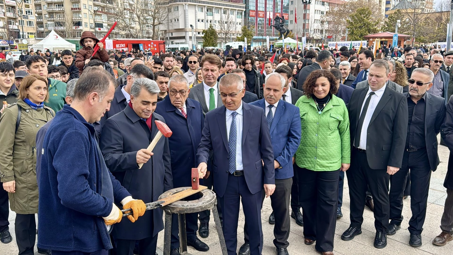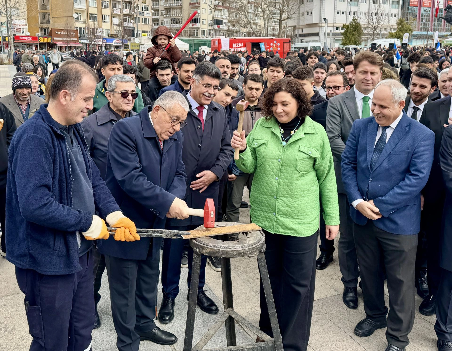 İl Kültür ve Turizm Müdürlüğünce Cacabey Meydanı'nda düzenlenen etkinlikte, il protokolü nevruz ateşini yakarak, örste demir dövdü.