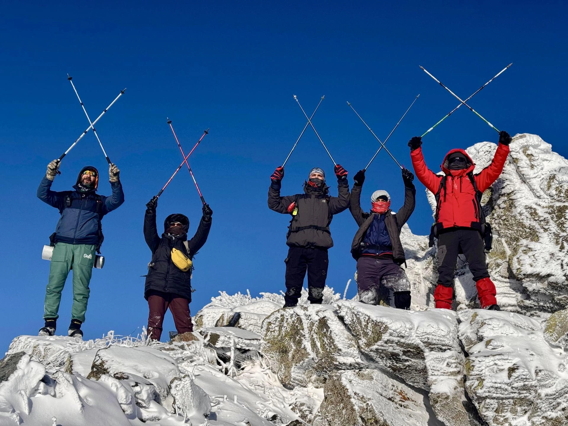 Yılın ilk gününü karla kaplı Gönül Dağı'nda geçiren ve zirve tırmanışını tamamlayan dağcılar, daha sonra kent merkezine döndü.